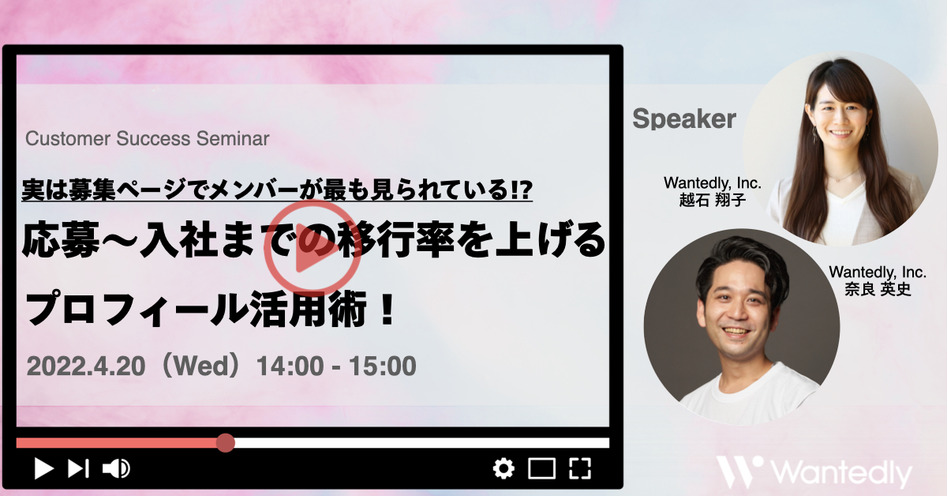 【アーカイブ動画 公開中!】実は募集ページでメンバーが最も見られている!? 応募〜入社までの移行率を上げるプロフィール活用術