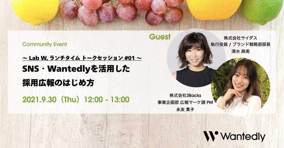 【終了】〜Lab W, ランチタイム トークセッション #01〜SNS・Wantedlyを活用した採用広報のはじめ方