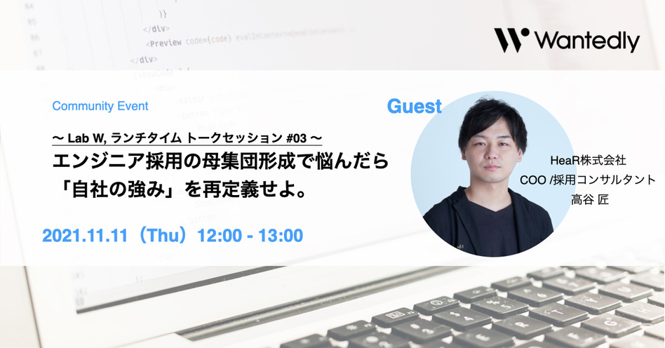 【終了】〜Lab W, ランチタイム トークセッション #03〜 エンジニアの母集団形成で悩んだら、自社の強み」を再定義せよ。