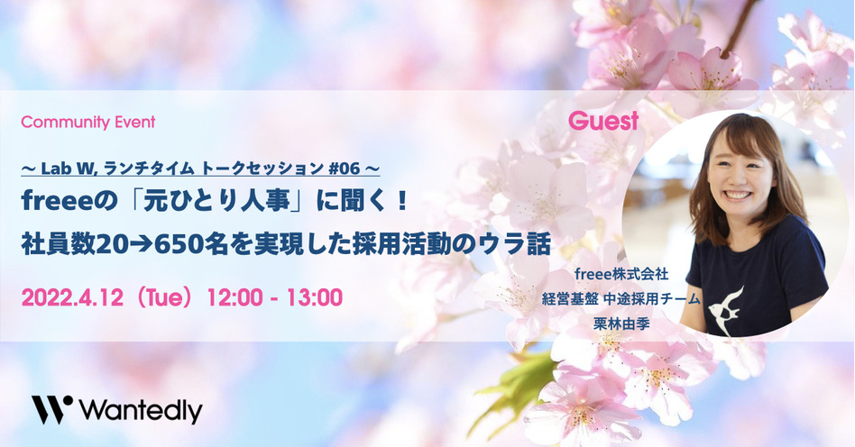 【終了】〜Lab W, ランチタイム トークセッション #06〜 freeeの「元ひとり人事」に聞く!社員数20→650名を実現した採用活動のウラ話