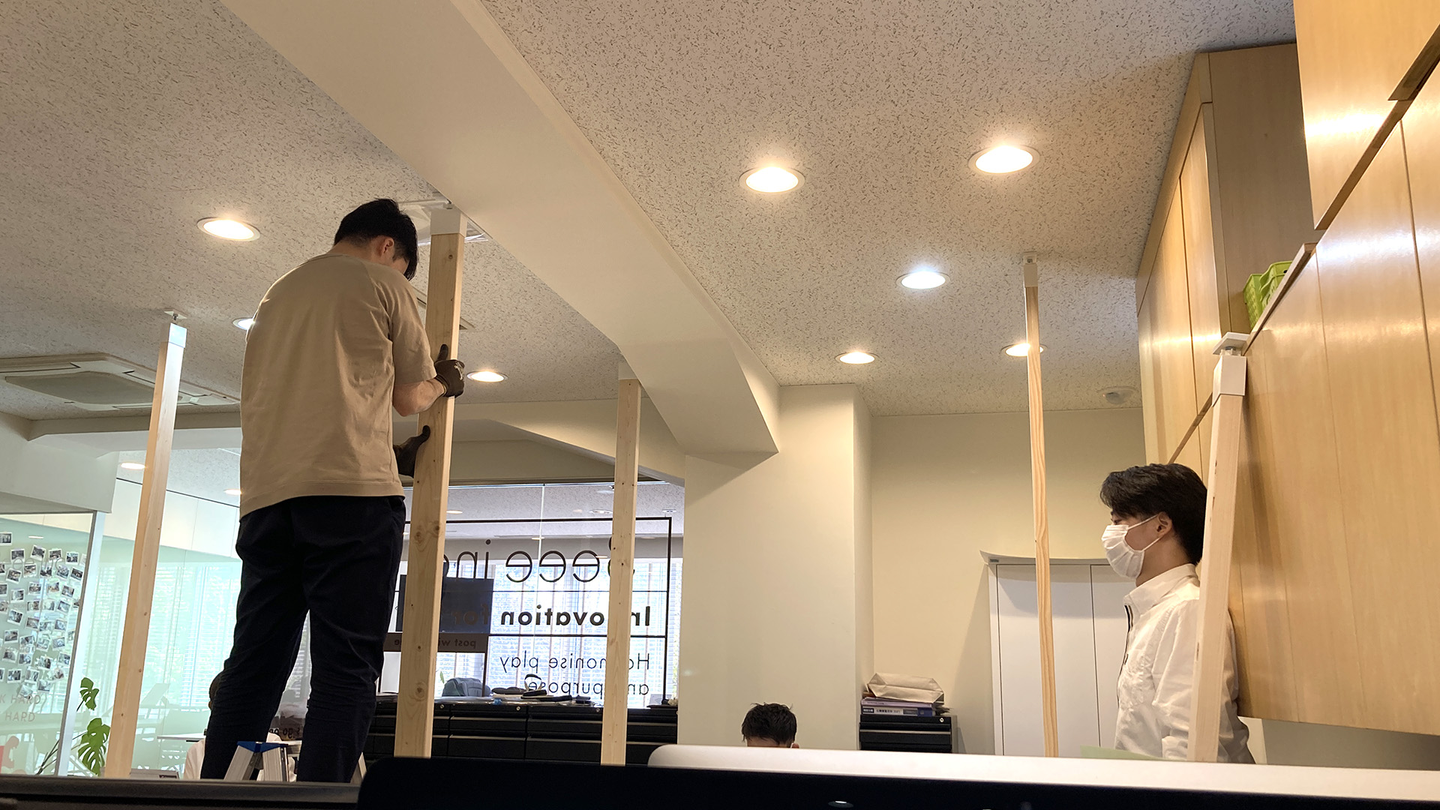 抗ウイルスシートを社内に張り巡らせます。