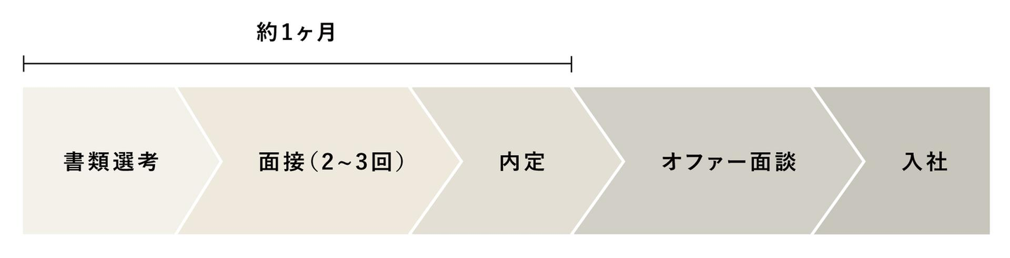 選考は以下のプロセスで進行します。エントリーから最終ステップまでは約1ヶ月。ご都合にあわせて日程を調整することも可能です。