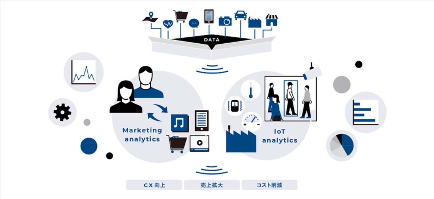 特にマーケティング、IoT領域のデータ分析に強みを持ち、分析設計やモデル構築、データ基盤構築・運用、分析人材育成の支援、AIプロダクトの提供などを行っています。