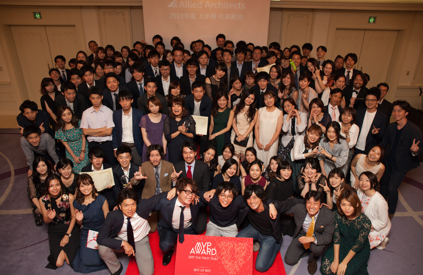 (写真:オフラインで開催できた2019年7月の上半期総会の写真。創業から15年。これからも社員一丸となって頑張ります!)