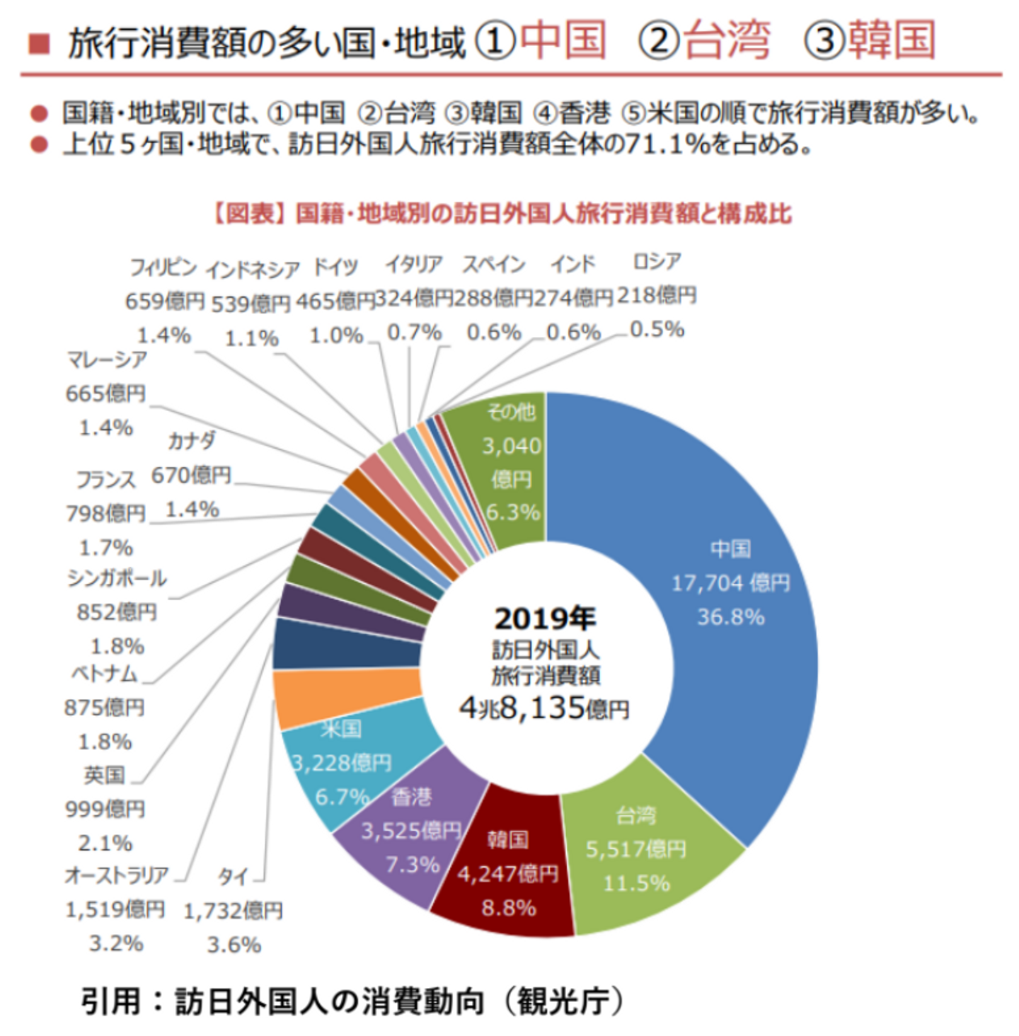 また、国別の旅行消費額を見ると、中国からの訪日観光客が全体の約40%を占めており、その額は1兆7704億円・・!