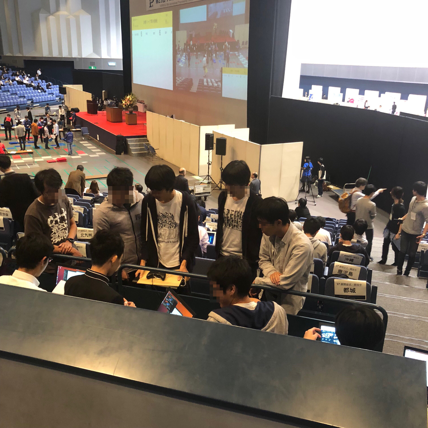 全国から1500名の若き高専生が集い、3つの部門(自由部門と課題部門と競技部門)で競いあいます。テーマがなく自由に作品を作れる自由部門、決まったテーマに沿って作品を仕上げる課題部門、ちなみに今年のテーマは「ICTを使った地域活性化」でした。不覚にも競技部門のルールを最後の最後まで理解することができませんでした。。この競技部門で興味深いのは毎年競技部門の競技内容とルールが変わるみたいで、プログラムと人がハイブリットに課題を解いていきます。プログラミングコンテストと言いながらヒューマンエラーの可能性も秘めおり観ていてドキドキ・ハラハラします。