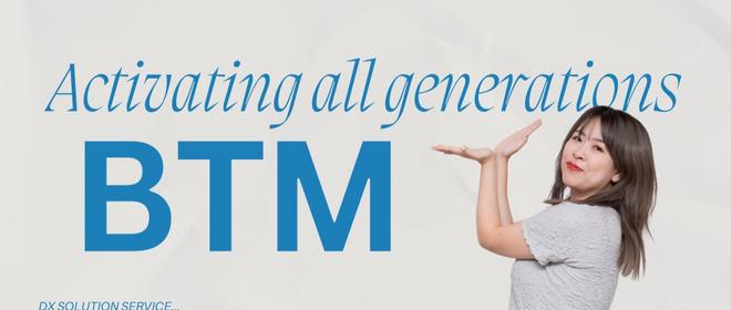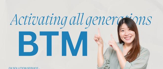 株式会社BTMは「日本の全世代を活性化する」をMissionに 日本全国をDX化することで地方創生を行っている企業です。 世の中には気付いていない眠る価値ある人や情報がたくさんある。 それらを集め、人や地域の魅力を再発見し、可能性を引き出したい。 全世代が活力に溢れ、未来に期待を膨らませる。 人生100年時代を愉しもう。日本はもっと、もっと⾯⽩くなる。 我々のこの日本を「あきらめ」から「希望」へ変えましょう。 これからの10年が大きな転換期だと思っています。