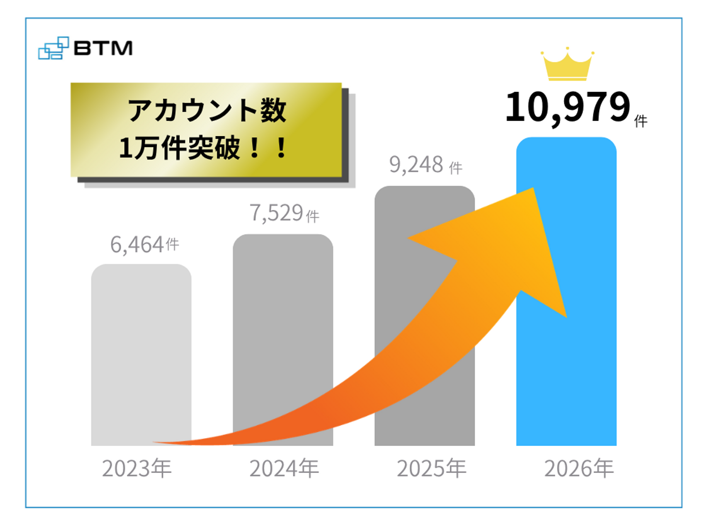 BTMの事業の要である「アカウント数」が、ついに10,000件の大台を突破しました!