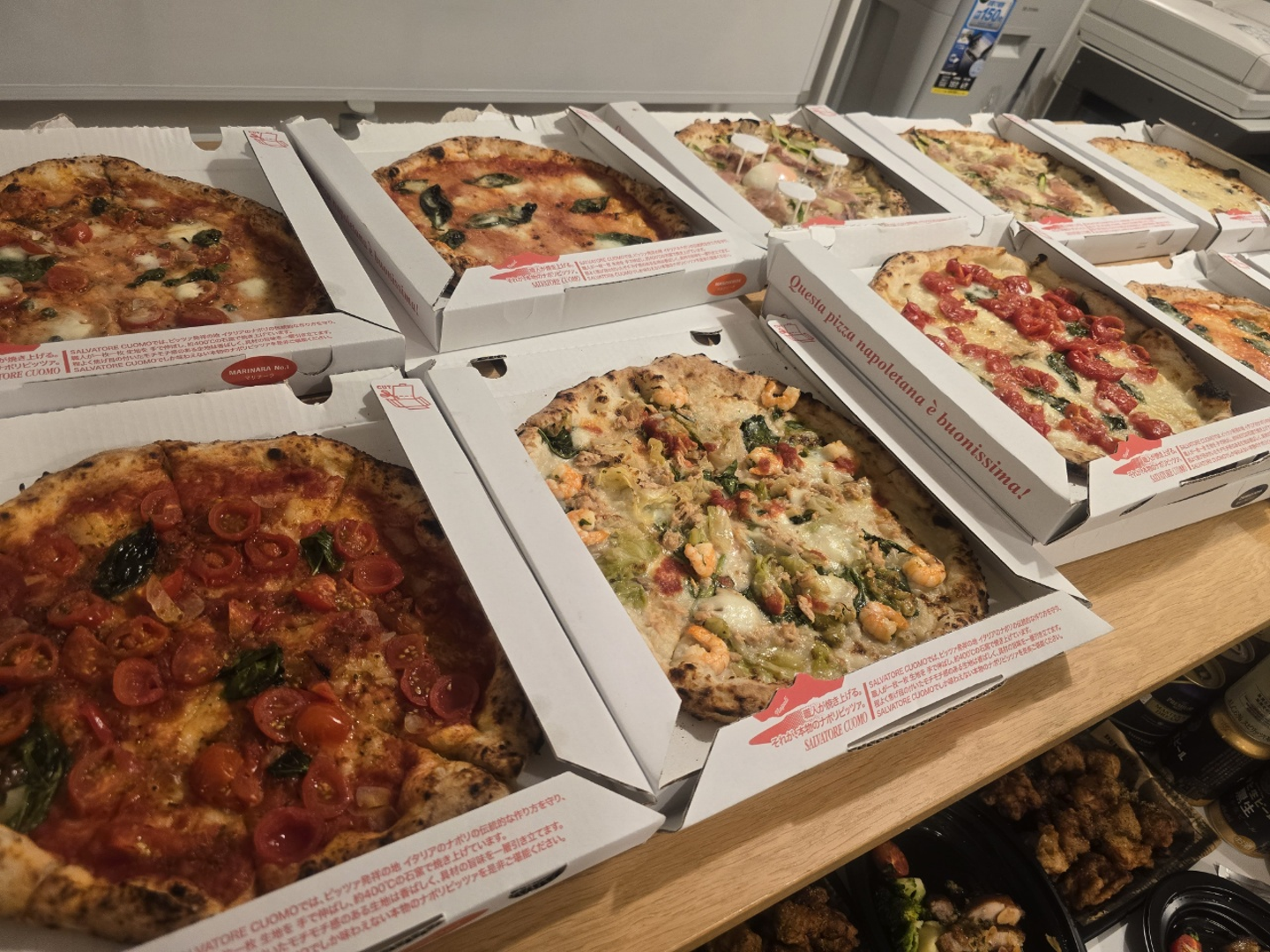 去年はピザの枚数が足りなかったので今年は多めに注文しましたが、それでもあっという間にみんなの胃袋に消えていきました。