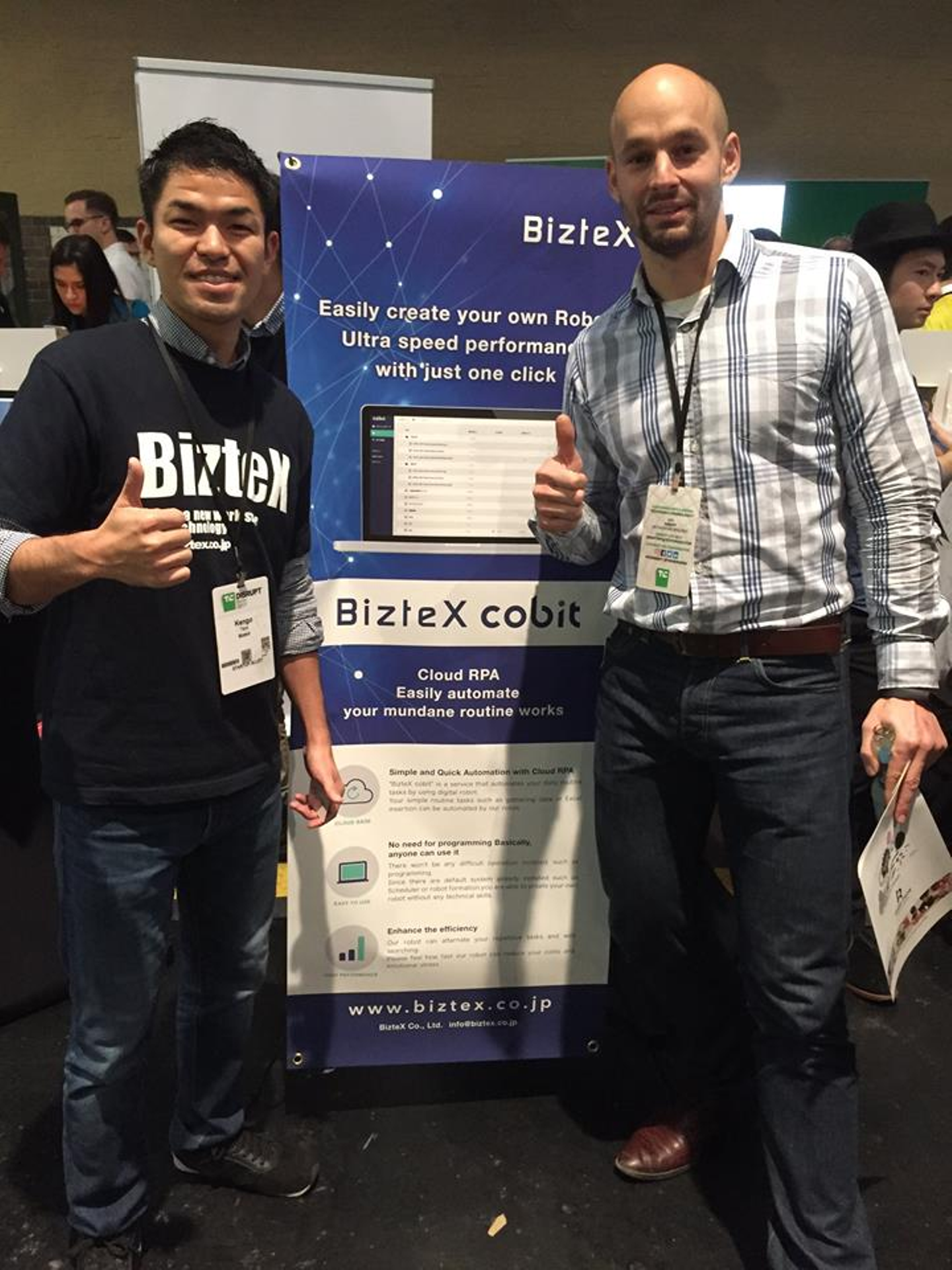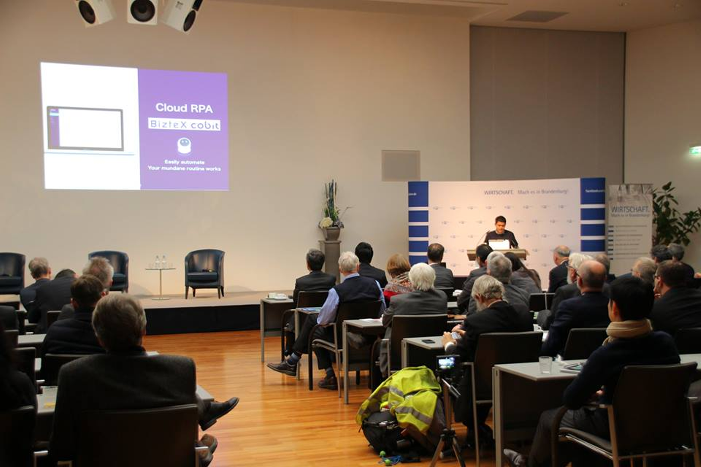 ベルリンで出展していた際に、ドイツ銀行の担当者が立ち寄り、弊社のクラウドRPAに興味いただいたこどで、翌日ドイツ銀行へ呼ばれてプレゼンすることに!
