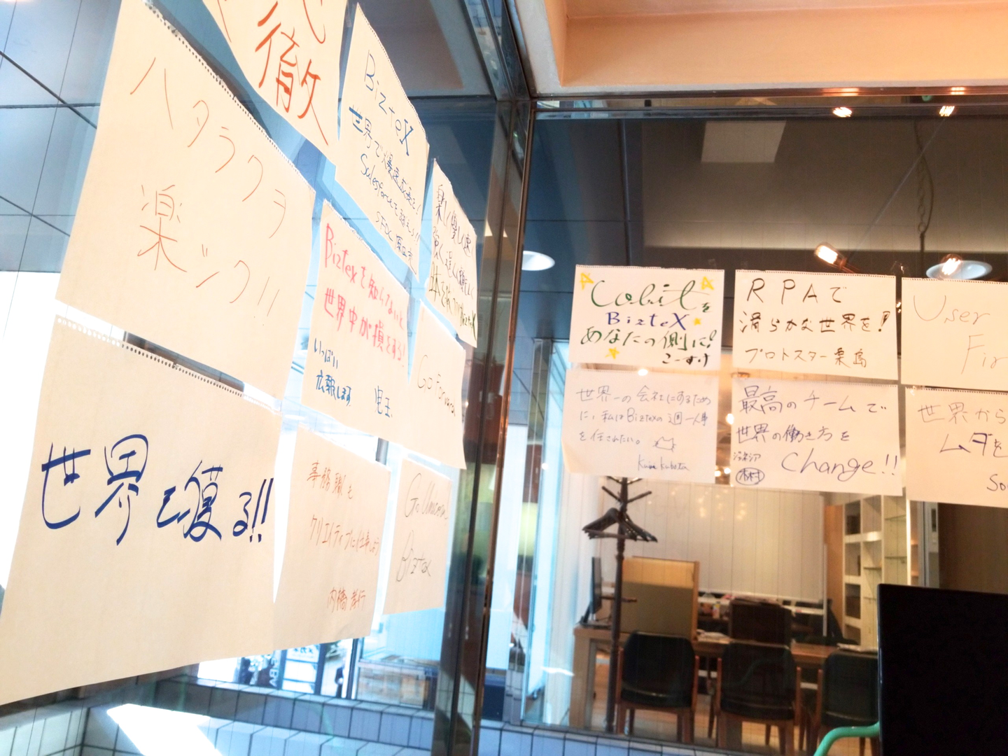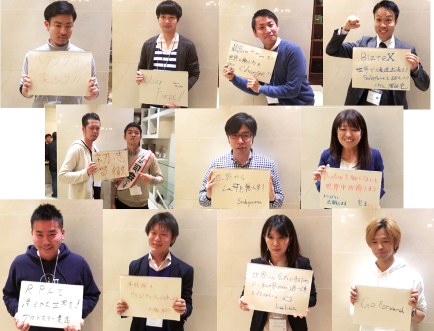 \出席者全員それぞれが「BizteX」をテーマに想いを書いた紙をもって!/