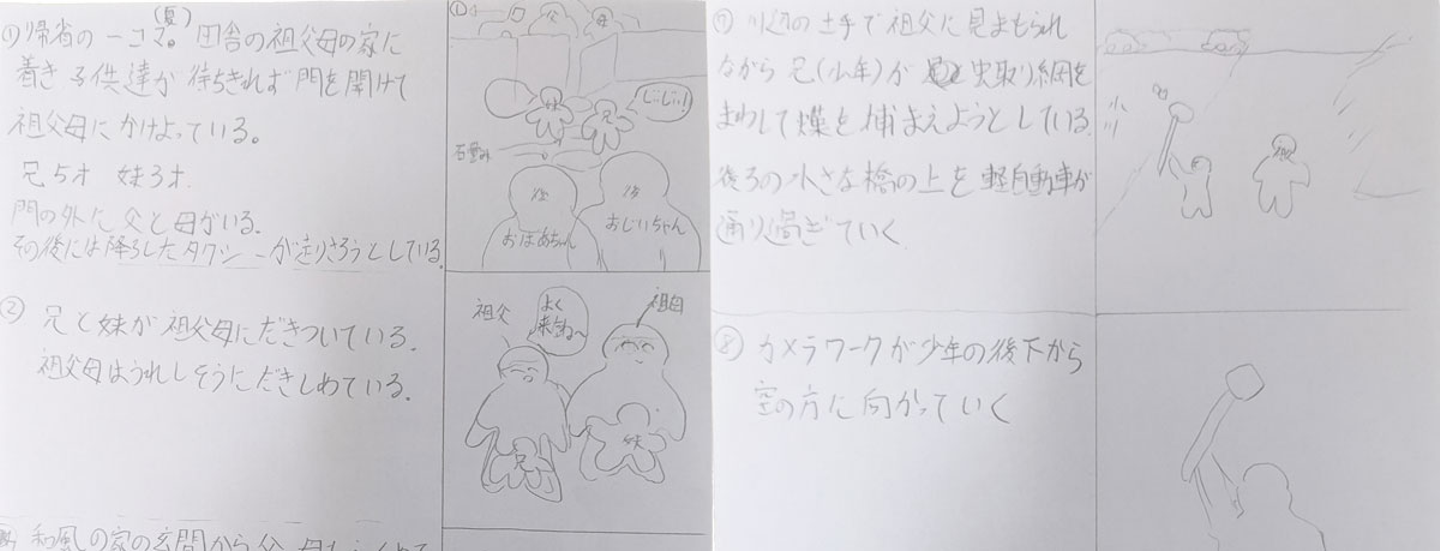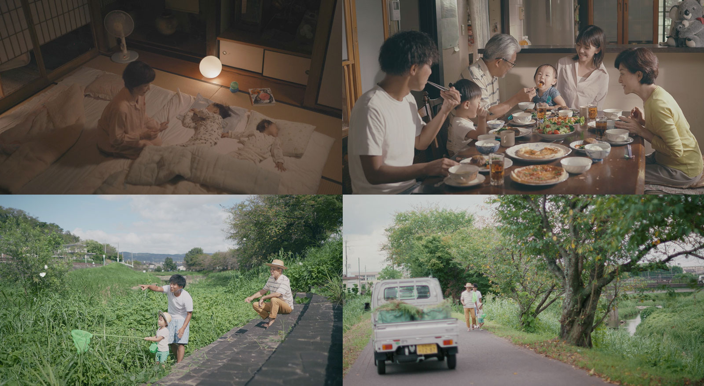 9月中旬:2日間かけて撮影。2歳の子には演技をさせることができないので、機嫌が良く、求めた表情になることを辛抱強く待って使えるカットを積みかせねていく。ご飯のシーンでは本当にご飯を食べているし、寝るシーンでは本当に2時間くらいお昼寝させたし、虫取りシーンでは本当に虫取りを行うという形で、演技ではなく本当の日常の一コマを撮影する感じで撮影を終えた。(エキストラ代を安く済ませるため、トラックの運転手も自分で担当。)
