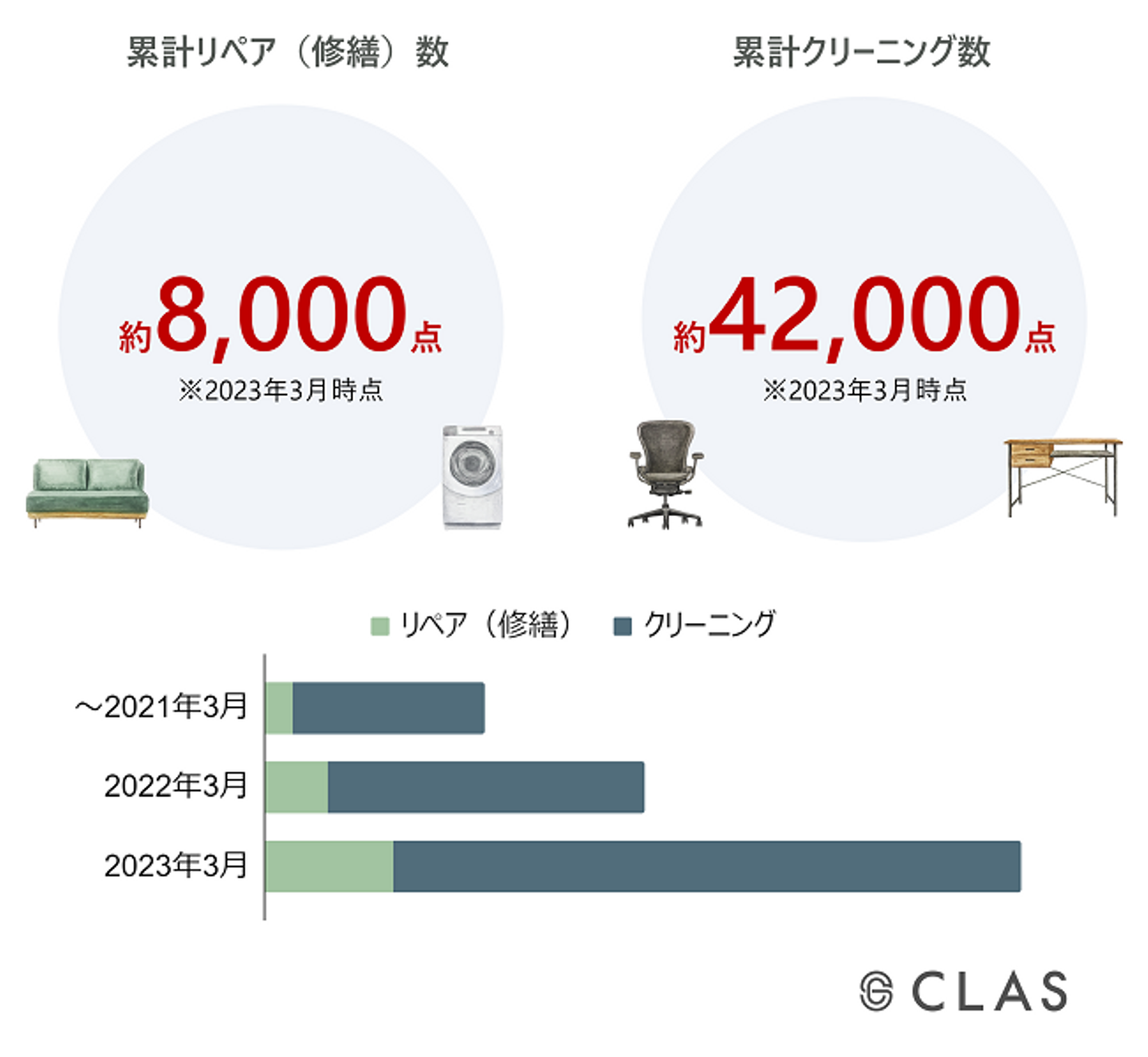 ・累計リペア(修繕)、クリーニング数