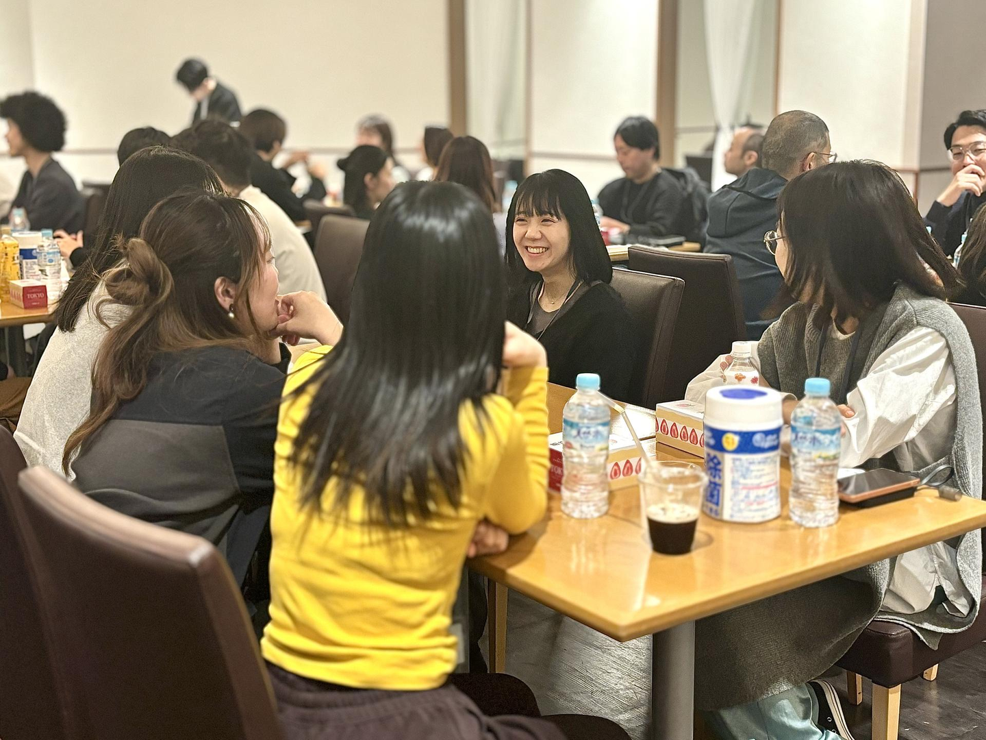 ブレイクタイムでは同じテーブルになったグループで感想を言い合う時間を設けています。