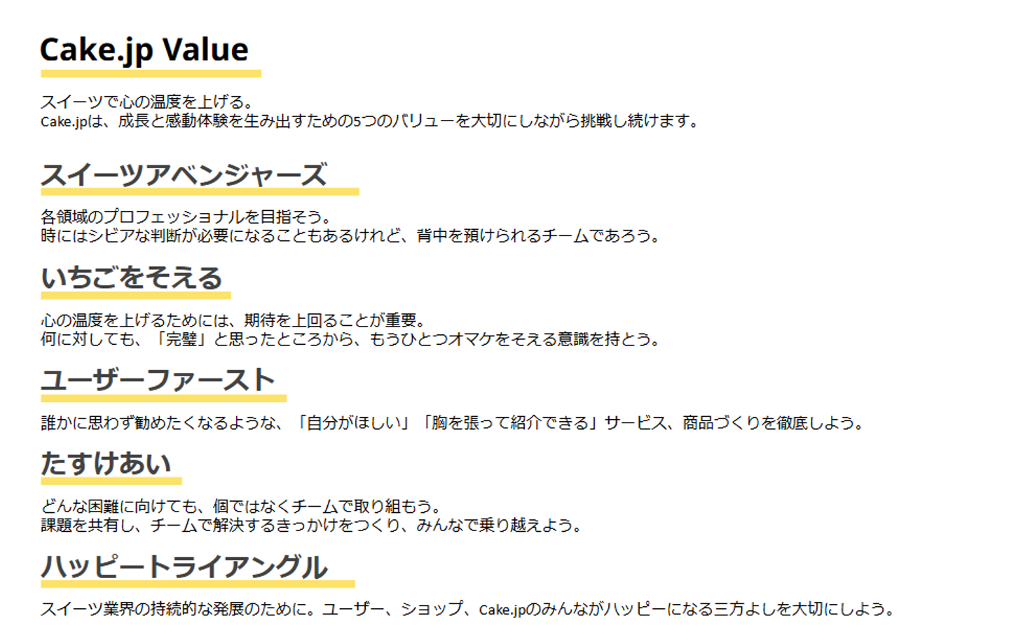 これは、Cake.jpのValueのひとつである「たすけあい」を体現する文化でもあり、安心して業務に取り組める環境を支えています。」