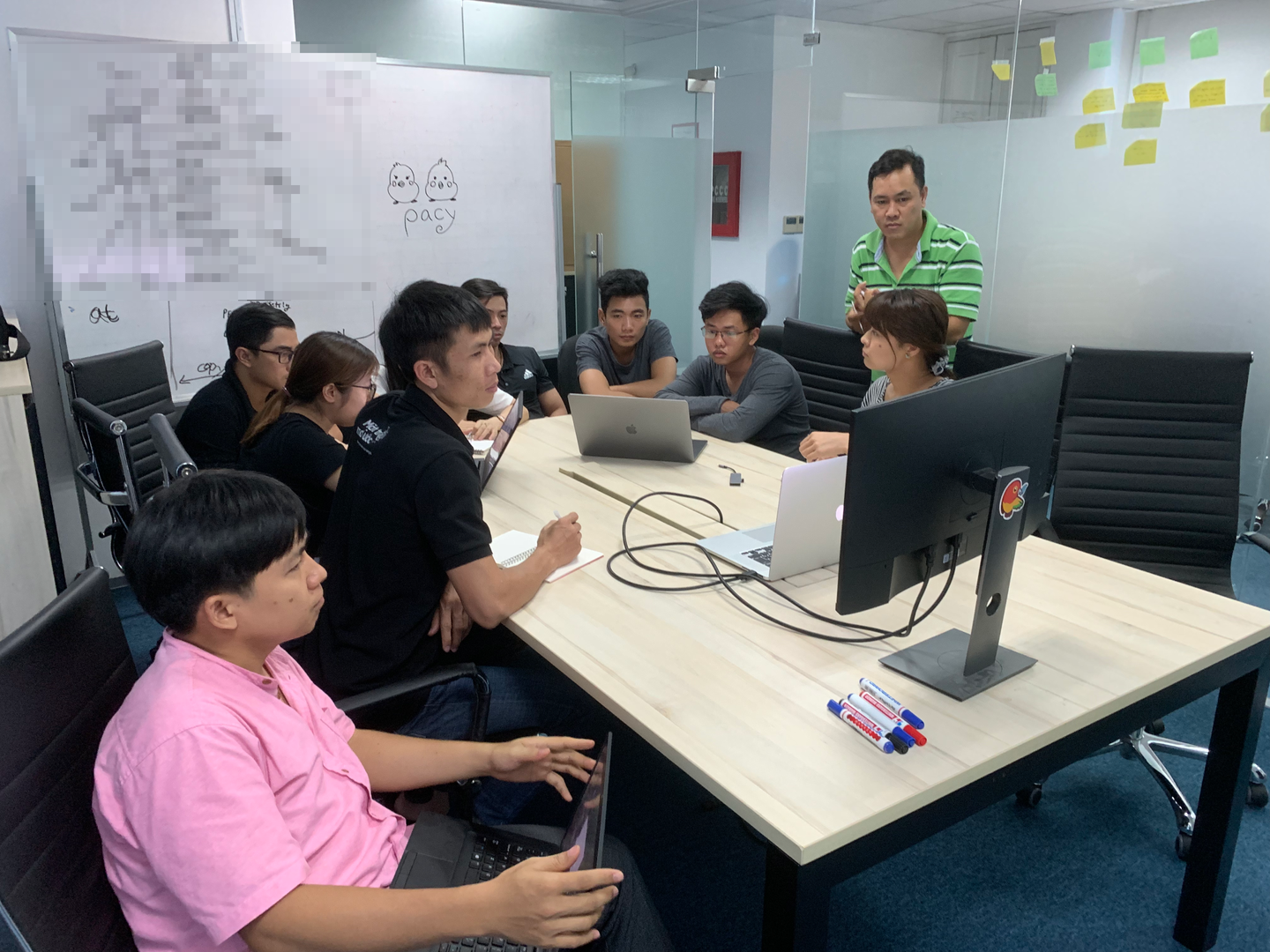 ベトナムオフィスの仕事風景。真剣な表情でミーティング中です。