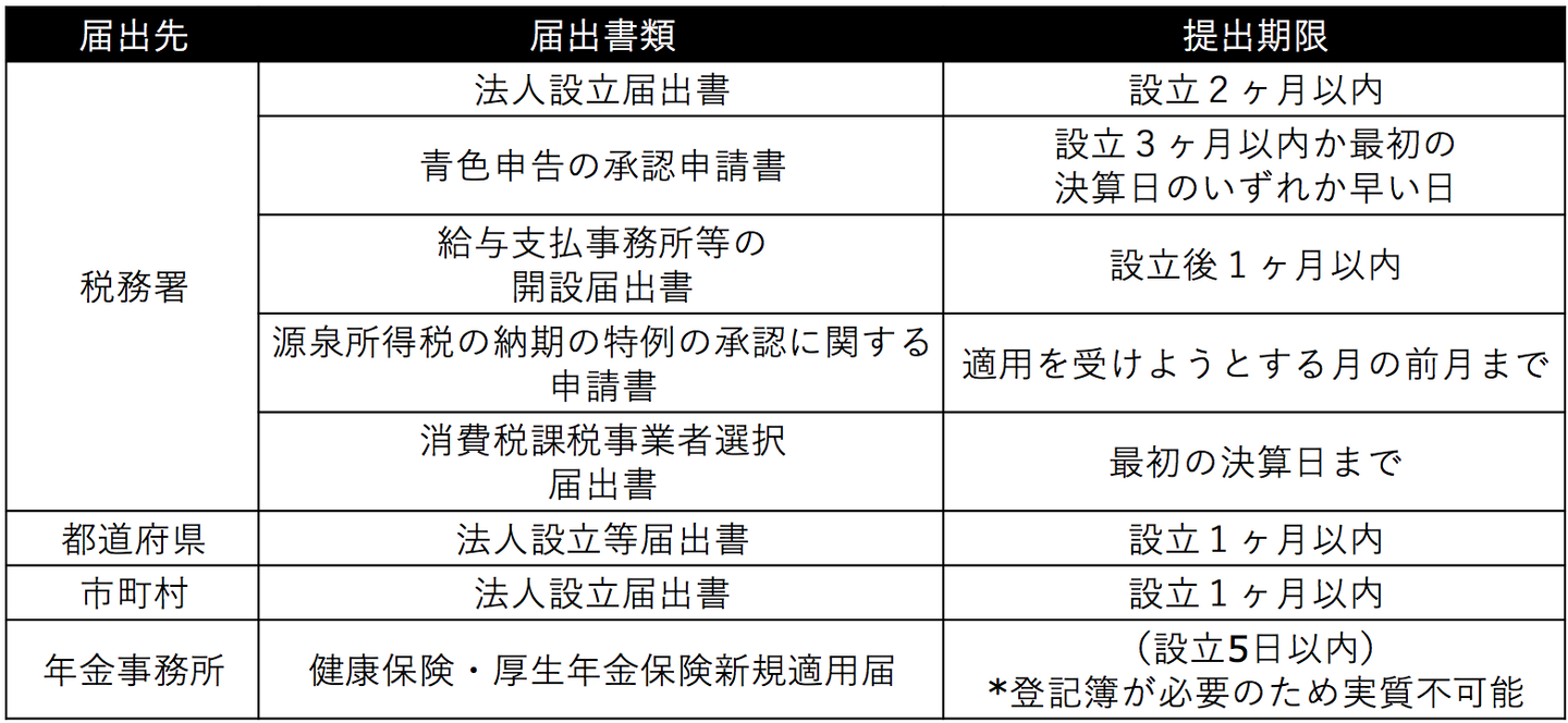 上記の1~5で会社設立は完了ですが、設立直後に必要な届出先もあるので直ぐに対応しましょう。