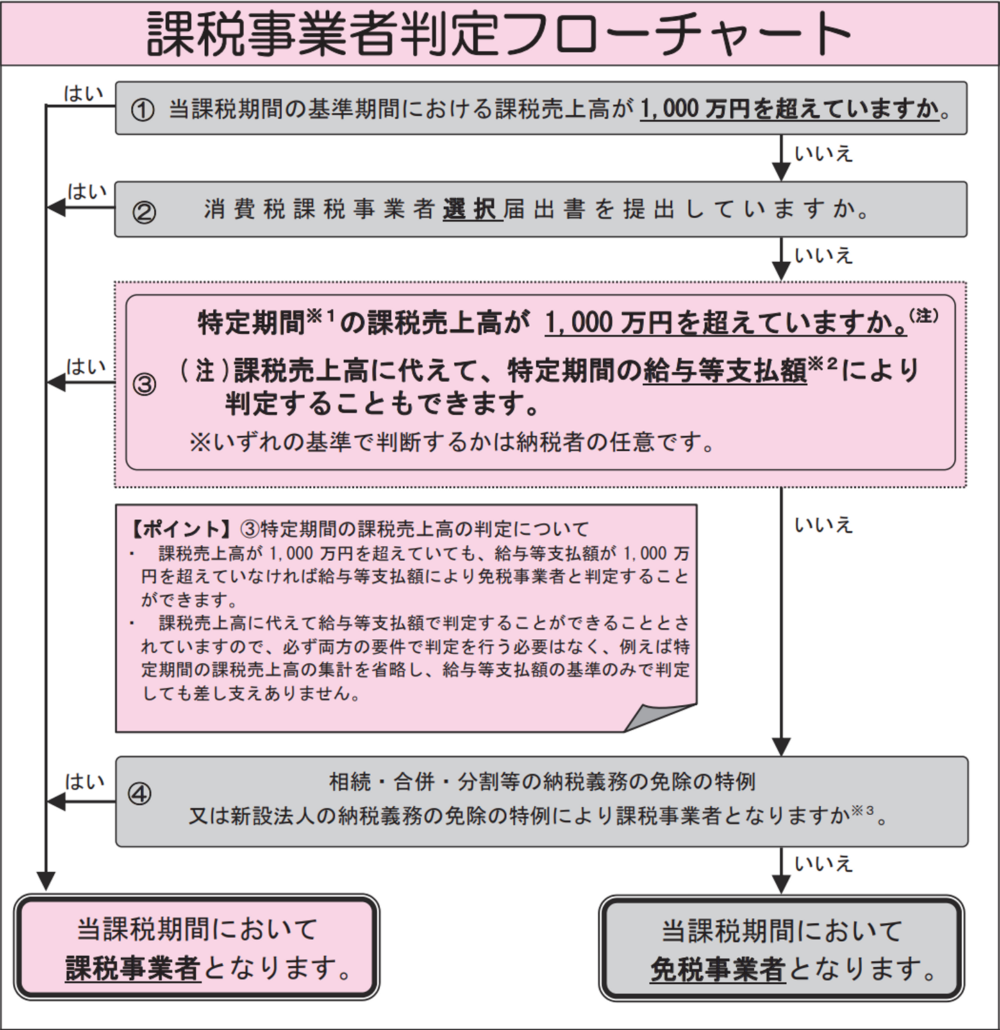 消費税の納税義務の判定フローの概要は以下の通りとなっています。