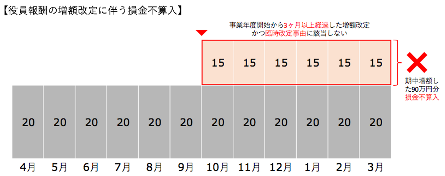 上記のうち、「①定期同額給与」という条件が曲者で、業績が急拡大したり資金調達して資金に余裕が出てきた後に、「役員報酬を見直したい!」と思ったのですが、従業員の給与と異なり、利益調整ができないように役員報酬の増額改定部分が「損金不算入」となってしまいます。