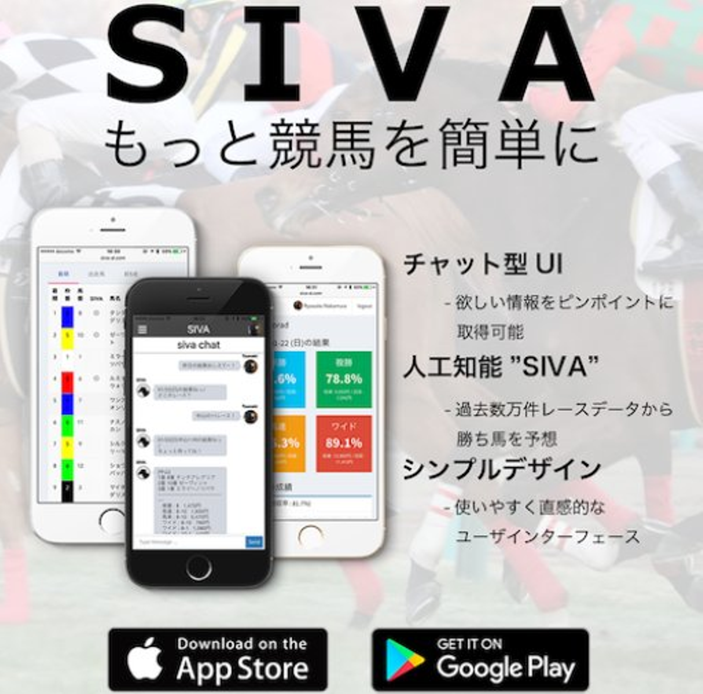 その当時、宇都宮社長は、既に「AI競馬予想-SIVA-」を開発済で、私は競馬について無知なのですが、なんかすごそう・・・と感じました。もちろん、読者の皆様はSIVAアプリをダウンロード済だとは思いますが、念のためダウンロードページを紹介します。