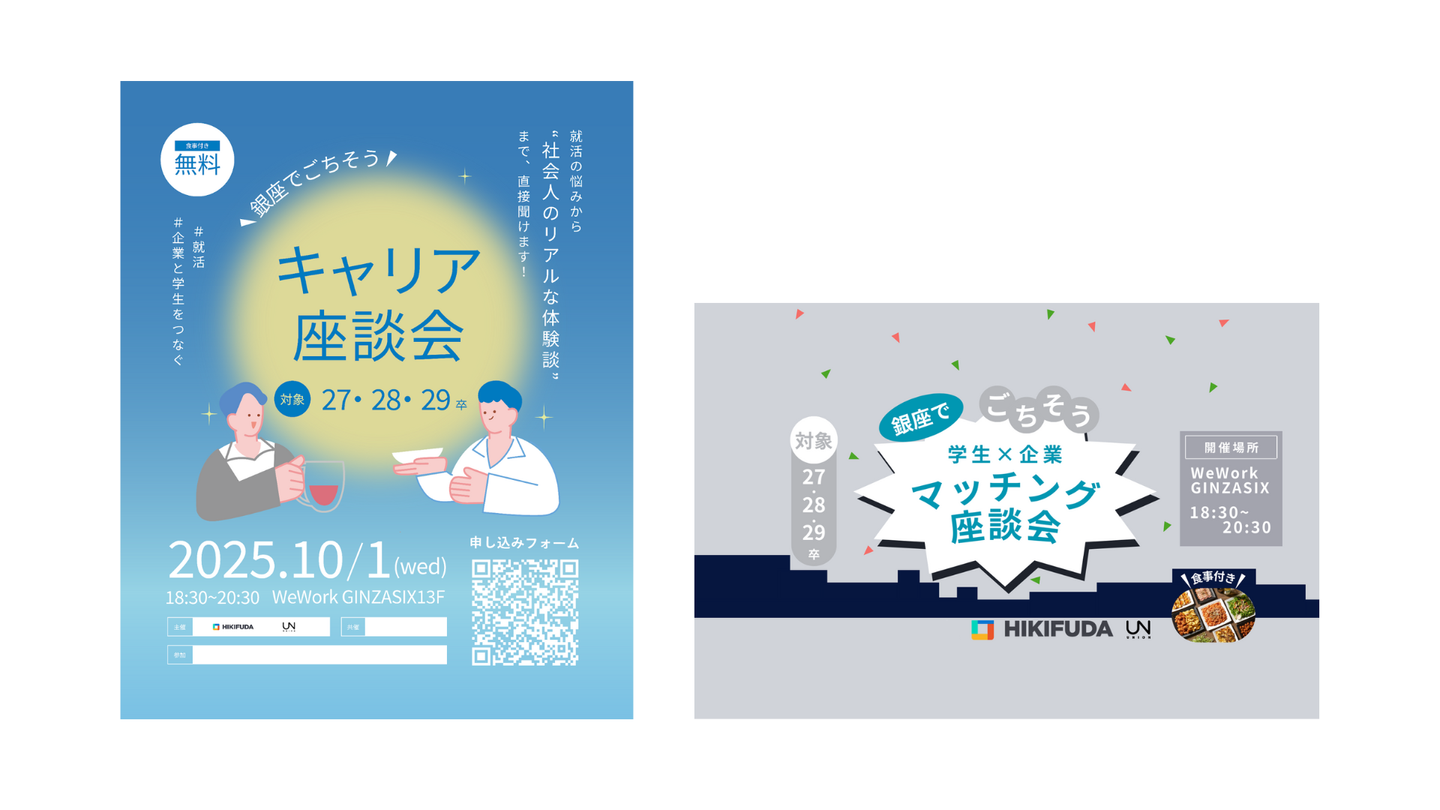 10/1に開催したUNION主催のキャリアイベント~銀座でごちそう~学生×企業 キャリア座談会座談会のビジュアル制作を担当しました。