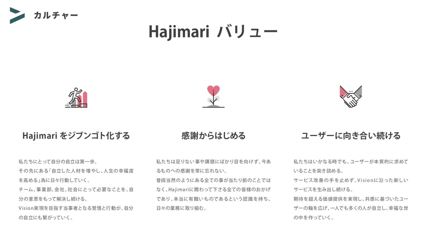 こうした結果を残せるようになったのは、常にユーザー目線に立ち、"どうしたらこのユーザーの方は弊社を・私を頼ってくれるのだろうか" "どうしたらこの企業のプロジェクト推進に役立てるだろう"など、Hajimariのバリューである『ユーザーに向き合い続ける』を全ての行動において徹底してくれているからだと感じています。