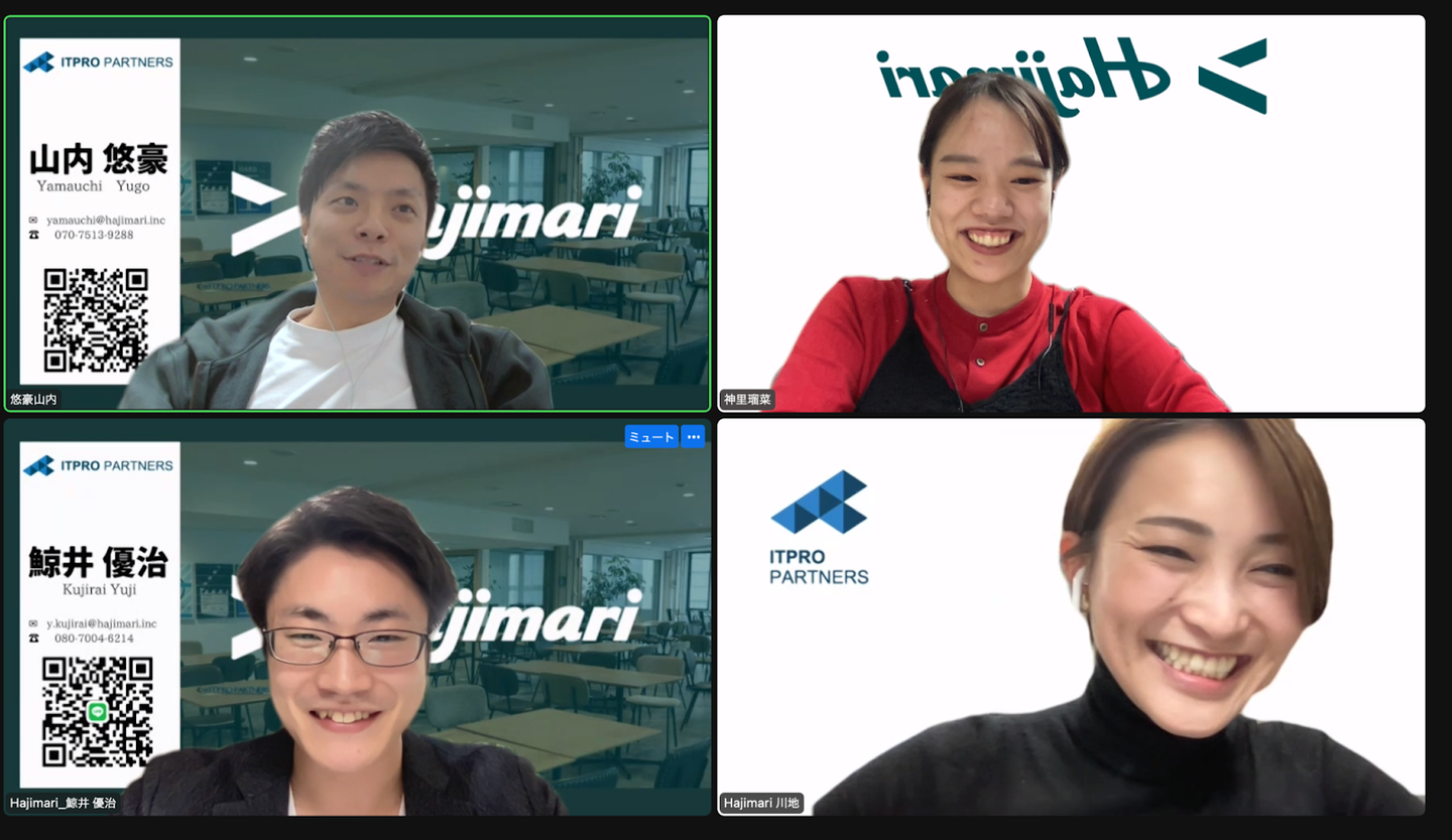 今は、自分のことや後輩の中島さんのメンターを任せていただいていますが、今後は何ごともジブンゴト化して事業やHajimari全体へ目を向けて行動していきたいです!