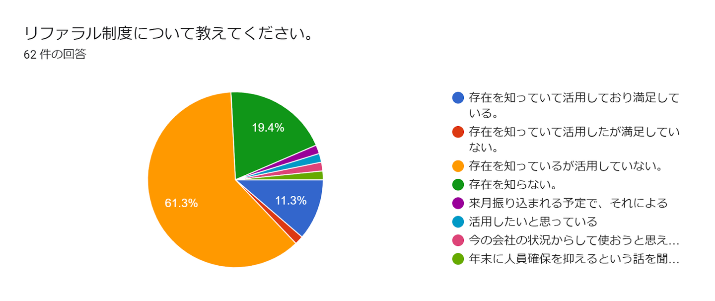 リファラル採用制度については、このアンケート結果から心理的なハードルもあるのかな?ということで2023年5月に制度の改善を終えて社内の告知済みで、徐々にですが制度活用者は増加傾向にあります。