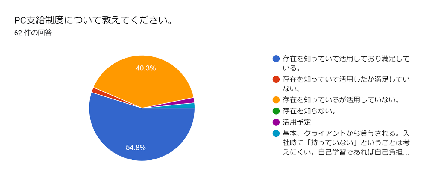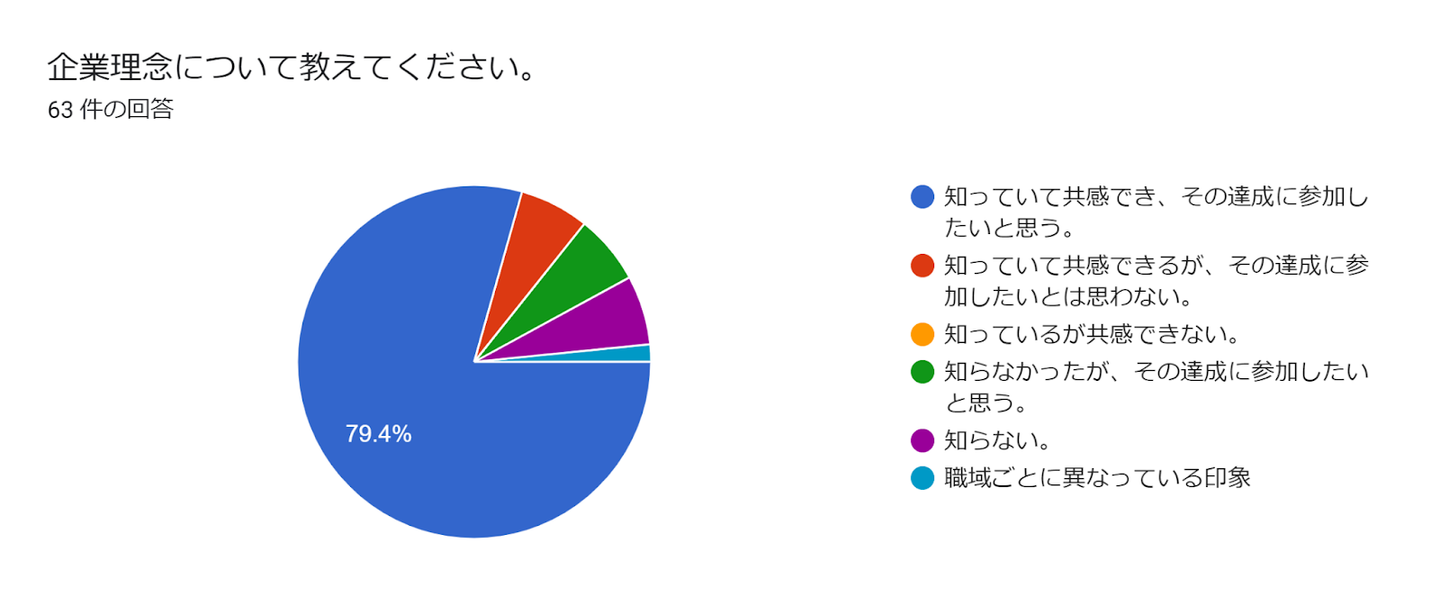 色んな価値観をもった人々が集まっているということも可視化できた非常に良い機会でした。今回のアンケート結果は入手直後から肯定的・否定的すべての意見を受け入れて会社運営の参考にさせていただいております。