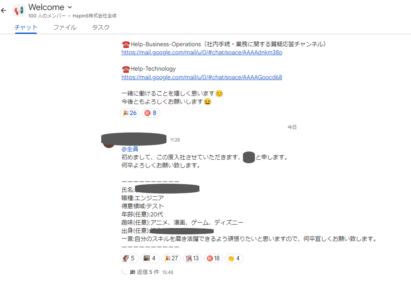 HapInSへのご入社を検討されている方にとって、社内メンバーとのコミュニケーションや社内ルールに関する不安が大きな要因となることも多いです。そのため、今回はHapInSでのGoogle Chat運用ポリシーと、どのような会話が普段行われているかについてご紹介いたします。