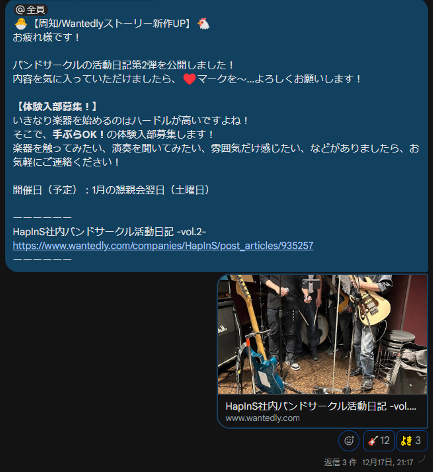 張さん「小林さんのギターが上手かったです!!!それだけで参加してよかったと思いました!!!」