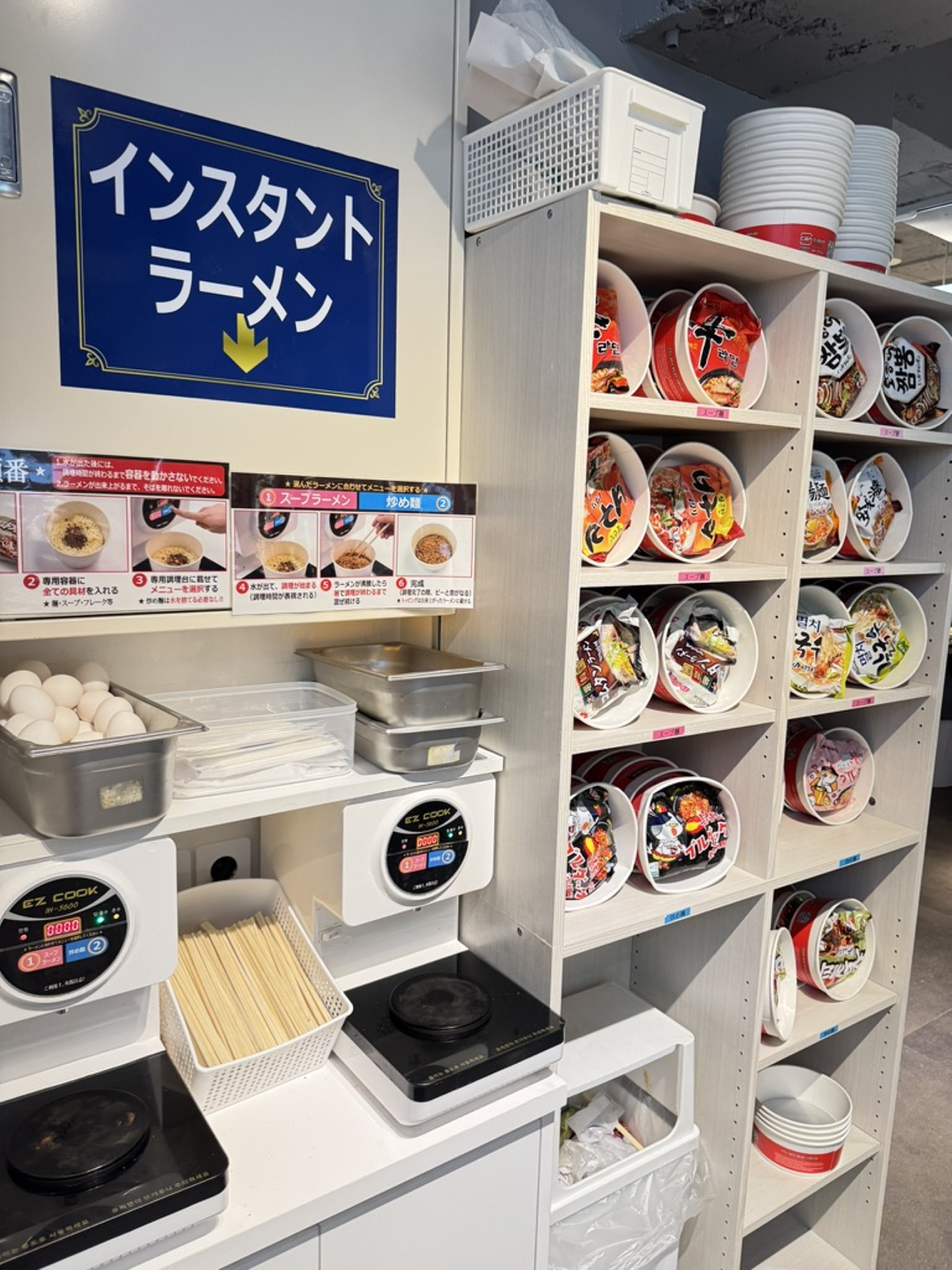 さらに、料理の提供方法も遊び心満載!「SHOP IN SHOP」っていう注文式の屋台形式 や、自分で好きな韓国インスタントラーメンを作れる「韓国ラーメン」コーナー なんていうのもあって、まるで食のテーマパーク! 「ただ食べる」だけじゃなくて、「特別な体験」ができるってところが、今の時代にぴったりって感じでした。