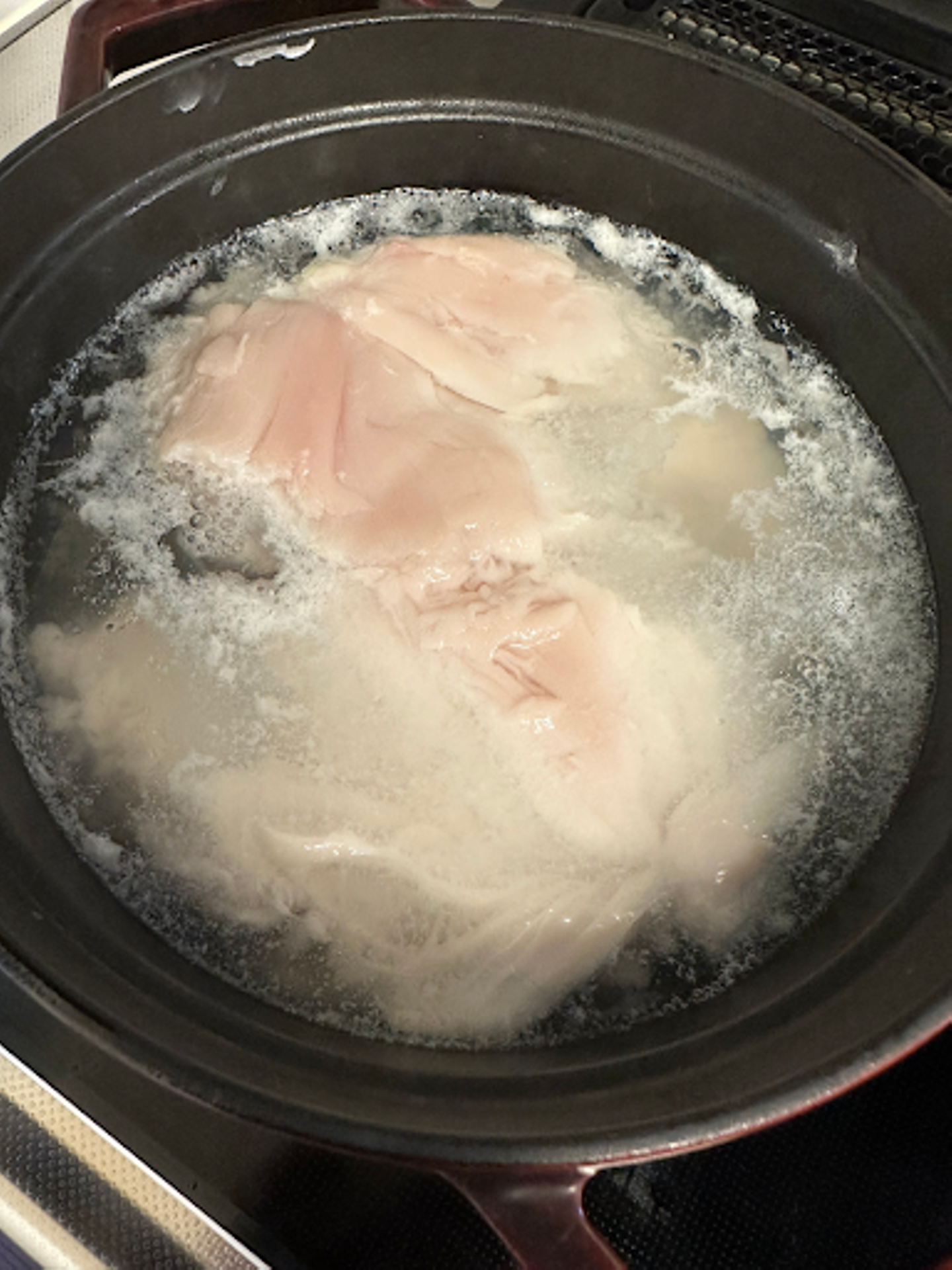100g90円の鶏胸肉(※もっと高くてもいいです)に、朝、下味をつけておきます。