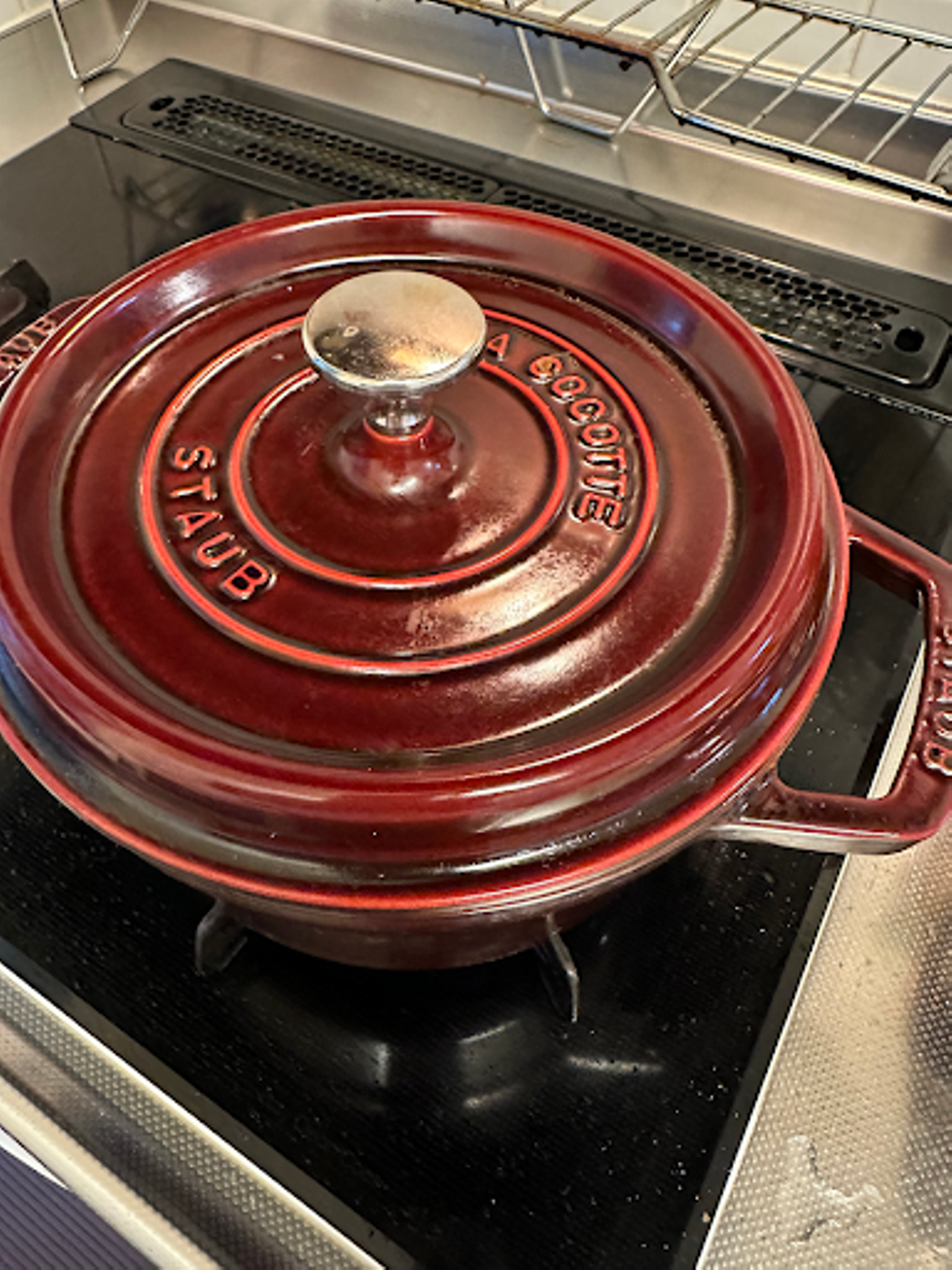 蓋をして火にかけ、湯気が出てきたら弱火にして、15分くらいで火を止めます。