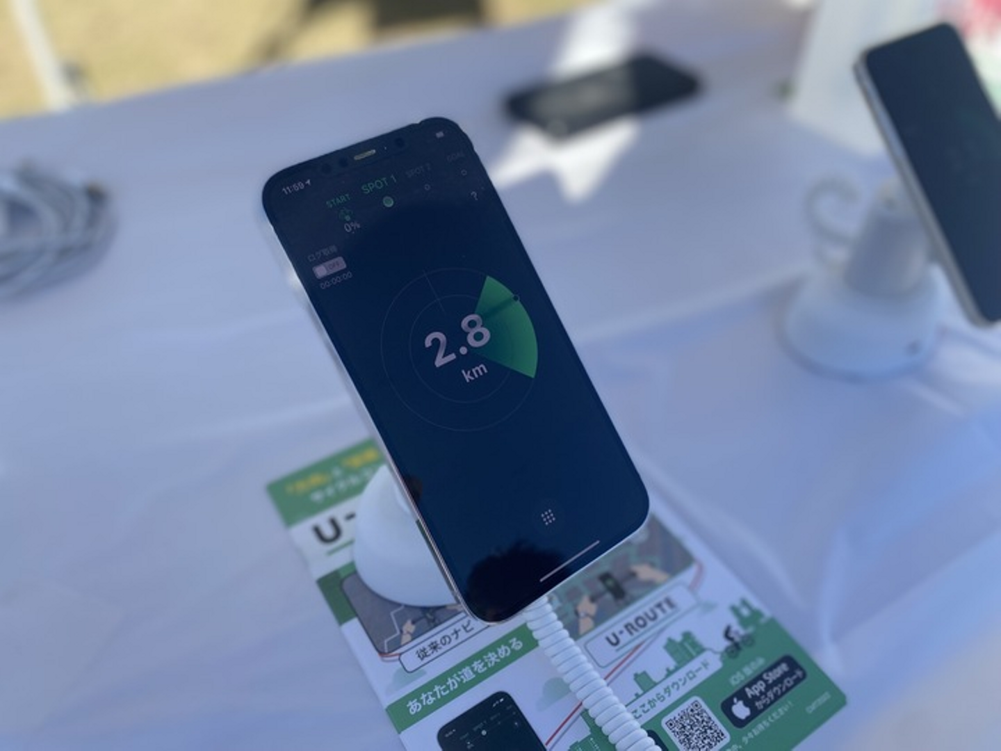 「『100m先右方向です』といった走行ルートの案内をせずに、目的地の方向と距離だけを示すので、走るルートを自由に決めることができるんです」と説明したところ、その場でダウンロードいただき、「帰りの自宅まで使ってみるよ!」とおっしゃっていただきました。