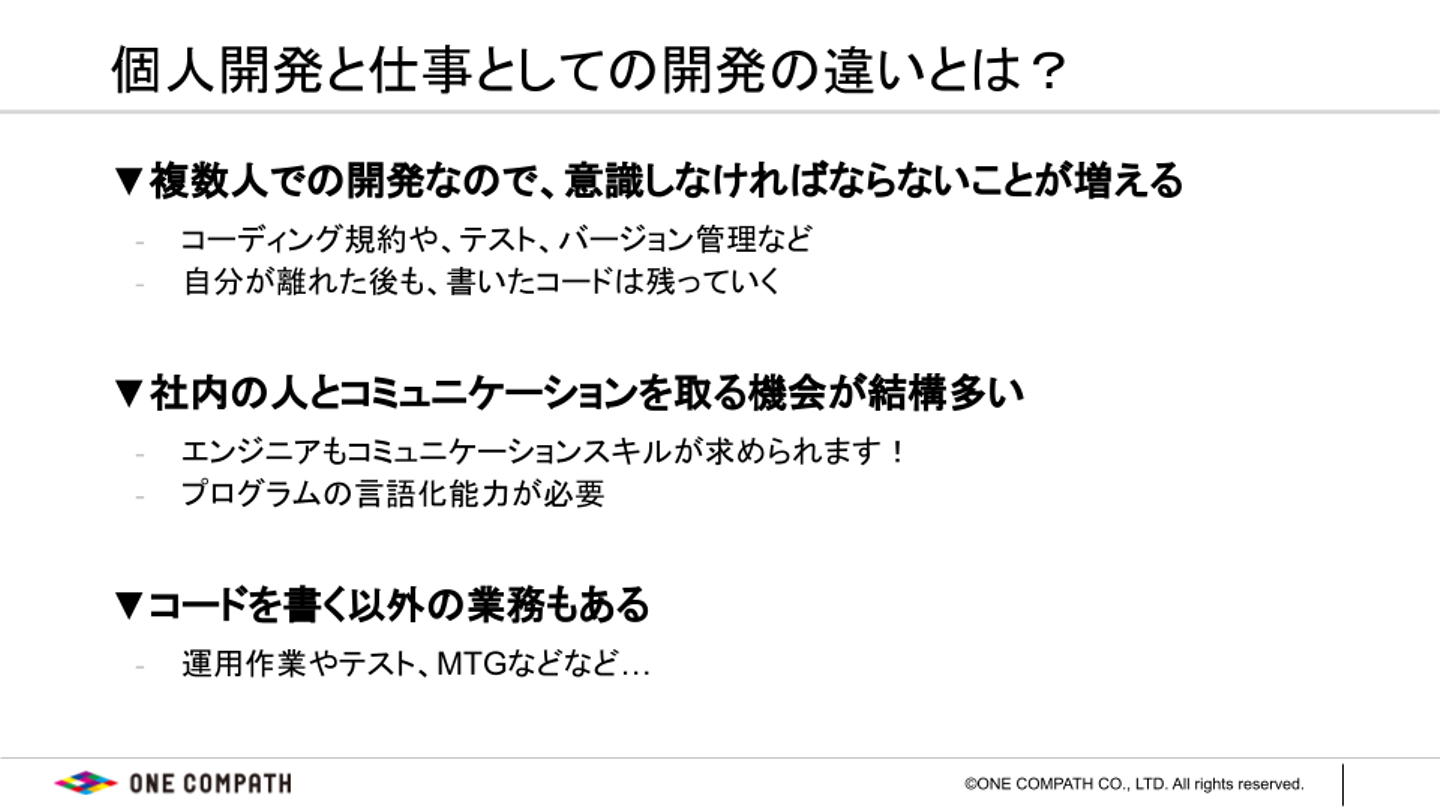 そして二つ目は、もっとONE COMPATHのエンジニアのリアルを皆さんにお伝えしたい、ということです。