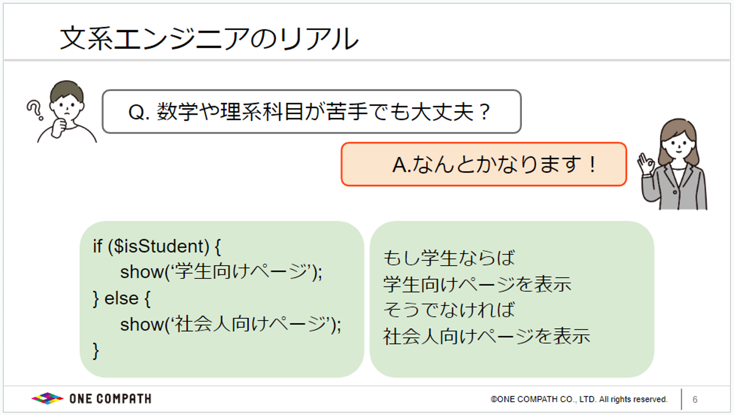特にこの中でも私が一番印象に残ったのは「やはり文系出身だと理系出身の人よりも遅れを取ってしまうのではないか?」という質問の回答でした。