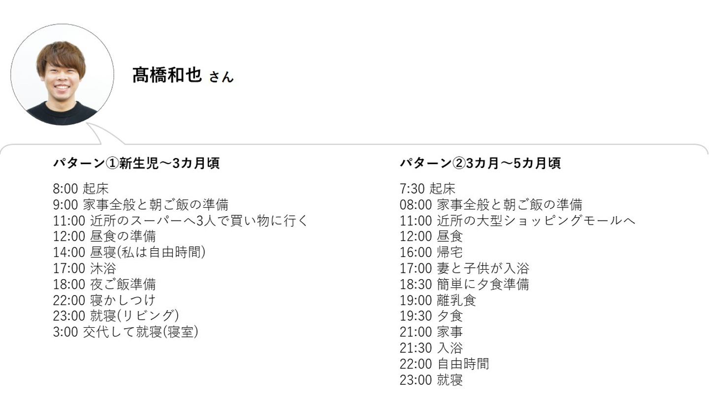 髙橋:子どもの月齢に寄って過ごし方は違っていましたね。スケジュールはこんな感じ!