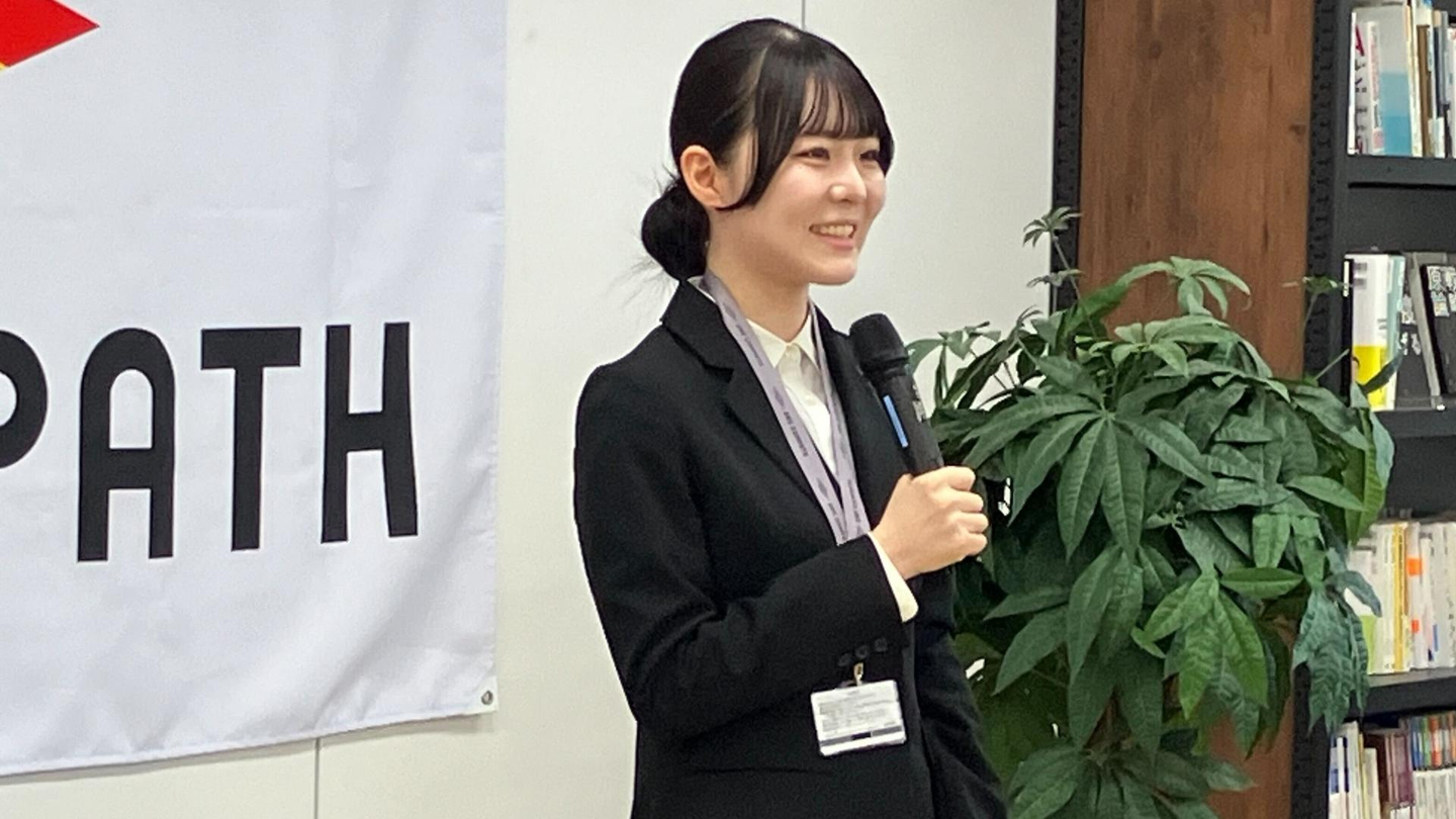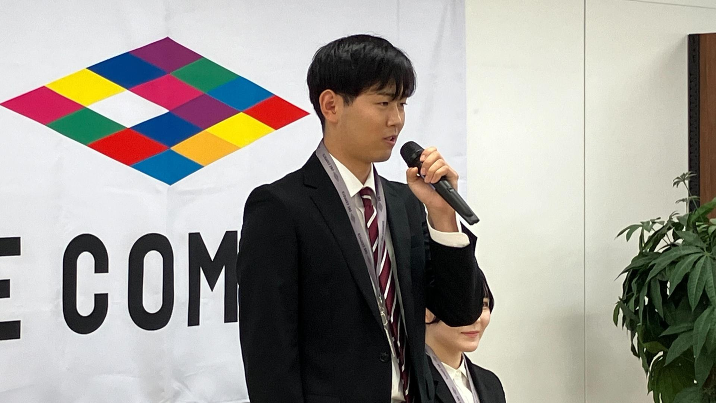 続いて、内定者のお二人に自己紹介として、それぞれ趣味や入社への意気込みをお話いただきました。