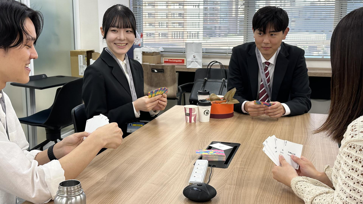 今回は、お二人の1年先輩にあたる24年卒の先輩社員と一緒に、バリューカードを用いて『仕事において大切にしたいこと』『人生において大切にしたいこと』について考えていただきました。