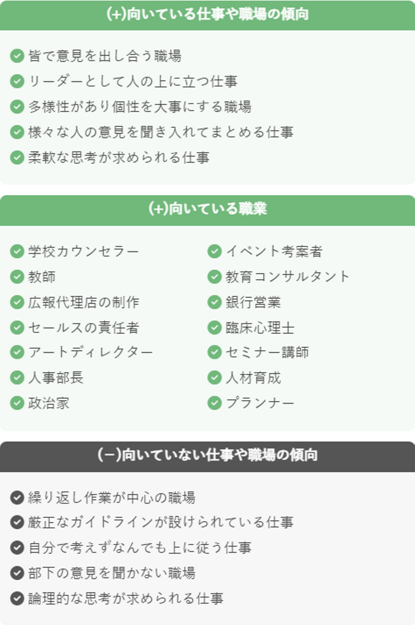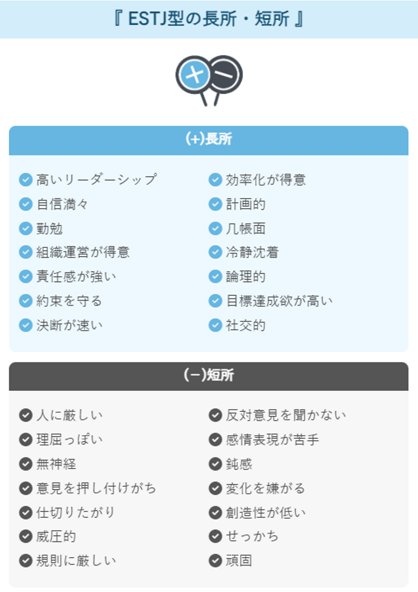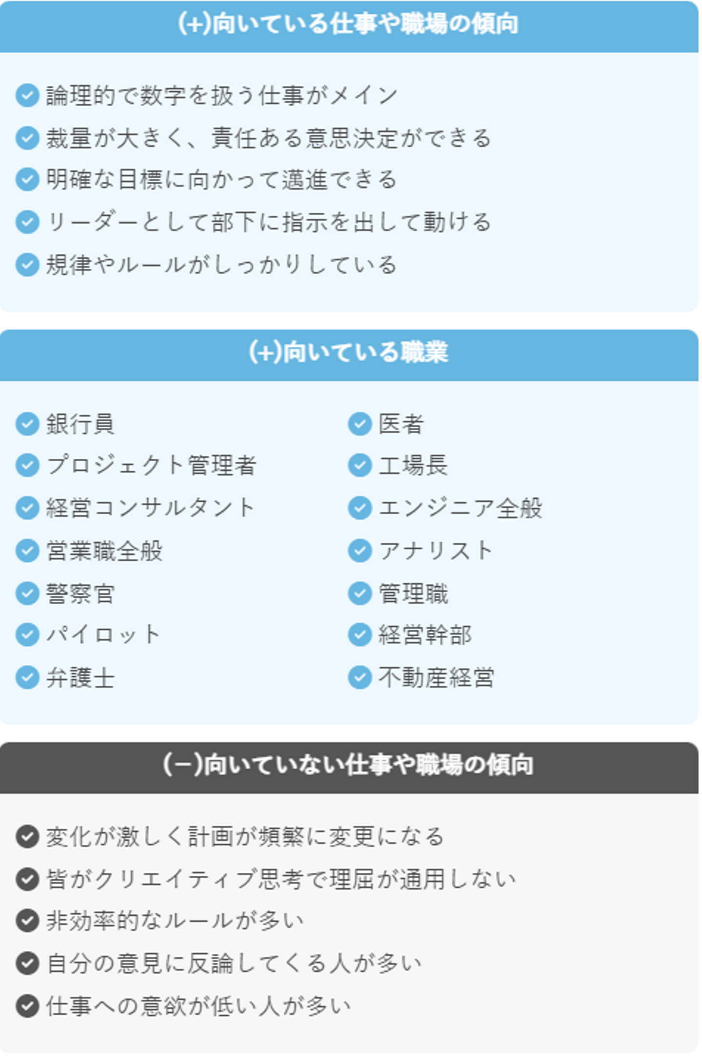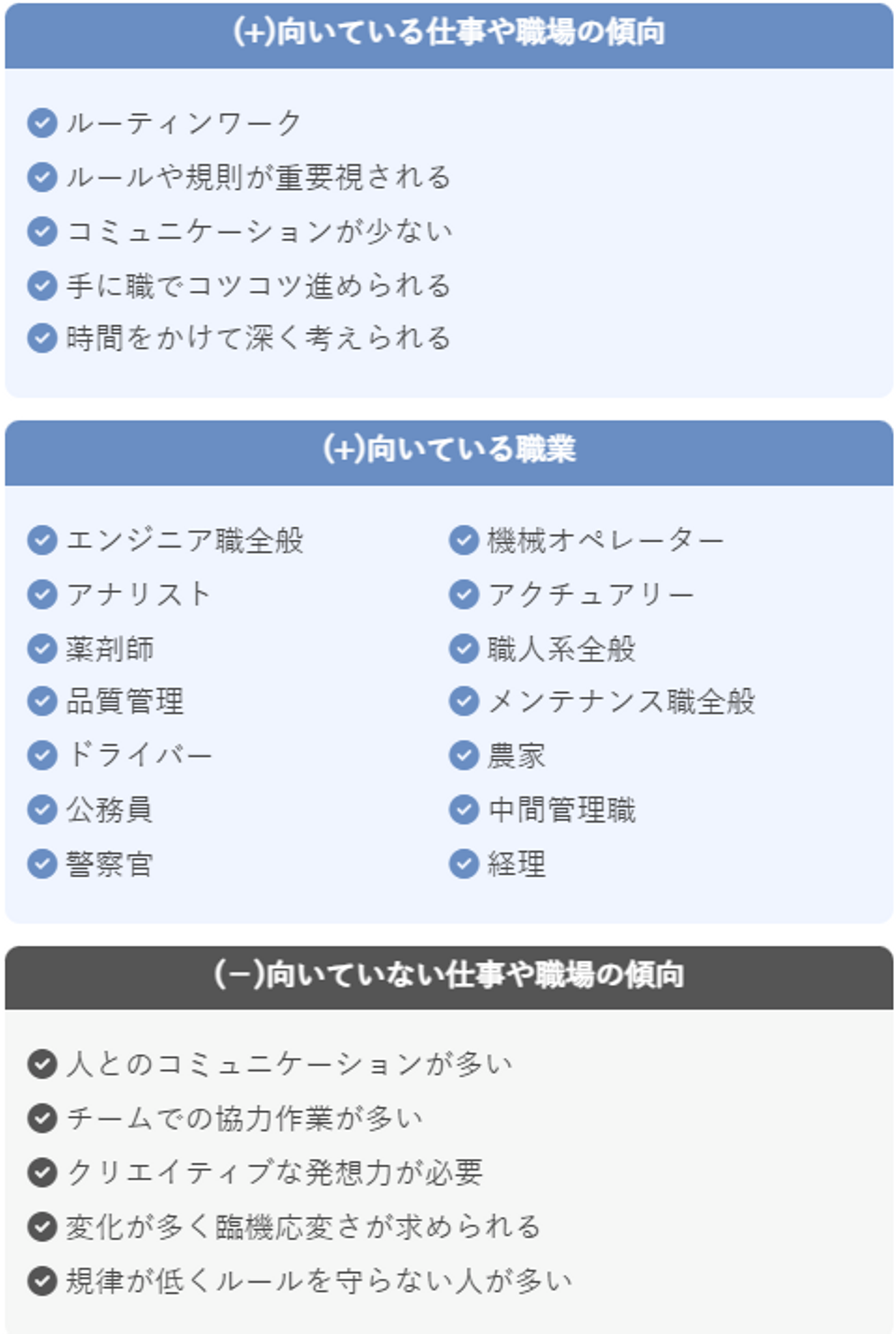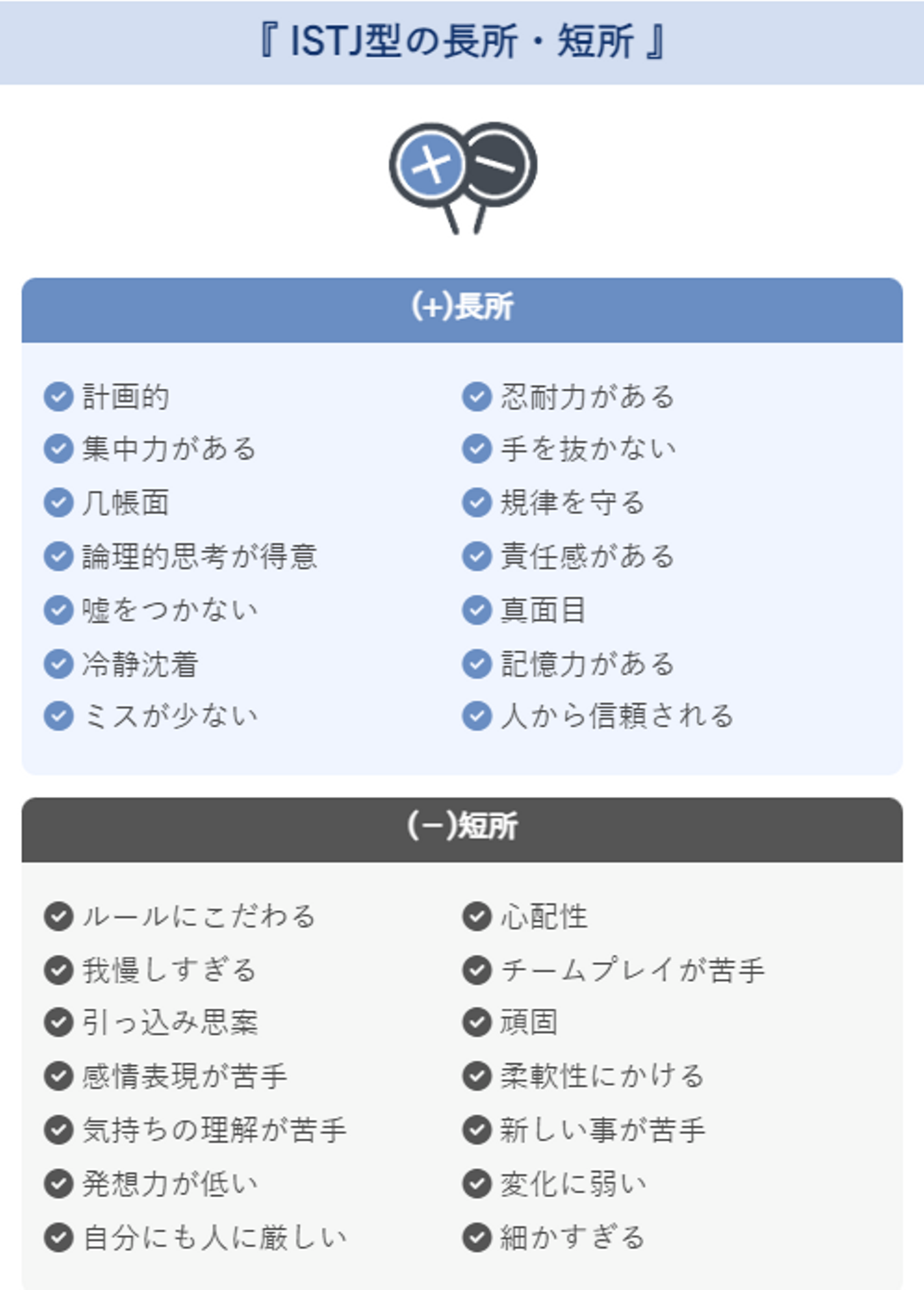 責任感が強い / 勤勉でコツコツ努力 / 几帳面でミスしない