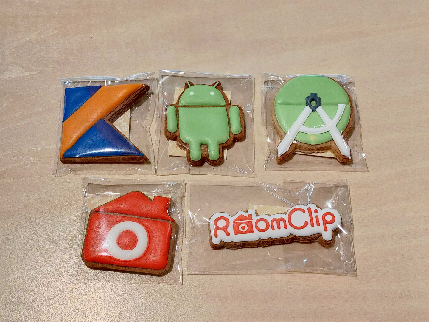 RoomClipのAndroidチームが開発の際に使っている、Android StudioとKotlinのロゴクッキーも用意をしました。(DroidKaigiのライブ配信で「Kotlin Fest 2020」の発表ありましたね!)