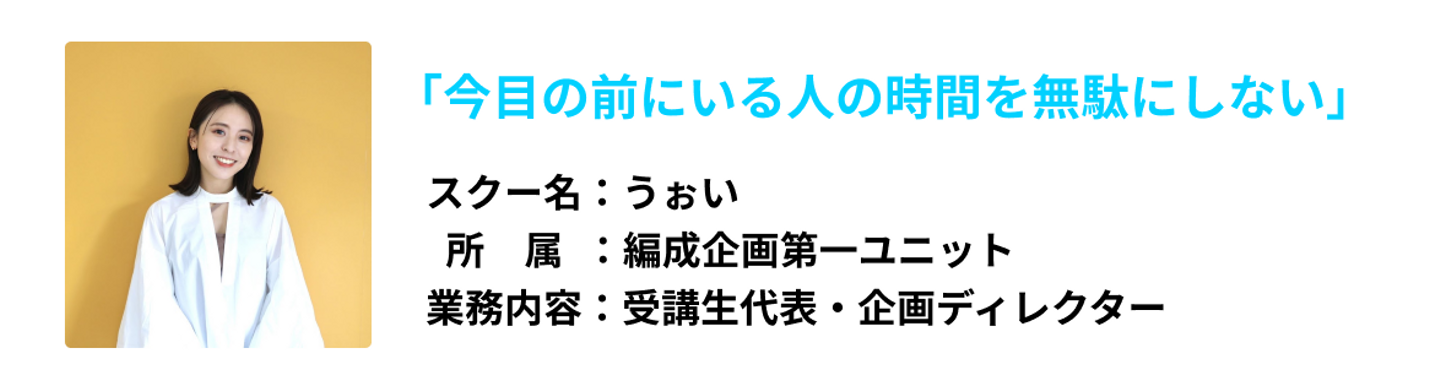 ・受講生代表として月20コマほどの生放送出演に加え、ウェビナーなどの司会も担当し、企画ディレクターとしては月6コマほどの生放送も担当してくれています。