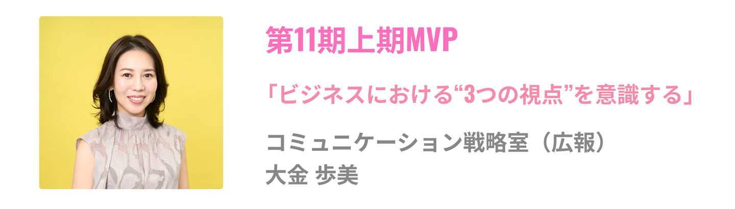 そして、今回紹介したMVP・準MVPメンバーに共通するもう一つの特徴は、自分の仕事の領域外にも「染み出す」力だと思います。栗田さんや島袋さんが言うように、Schooの中で起こっていることをすべて「自分ごと」と捉え、ミッション・ビジョンの実現のために自分ができることはすべてやる!という強い決意を見習いたいです。