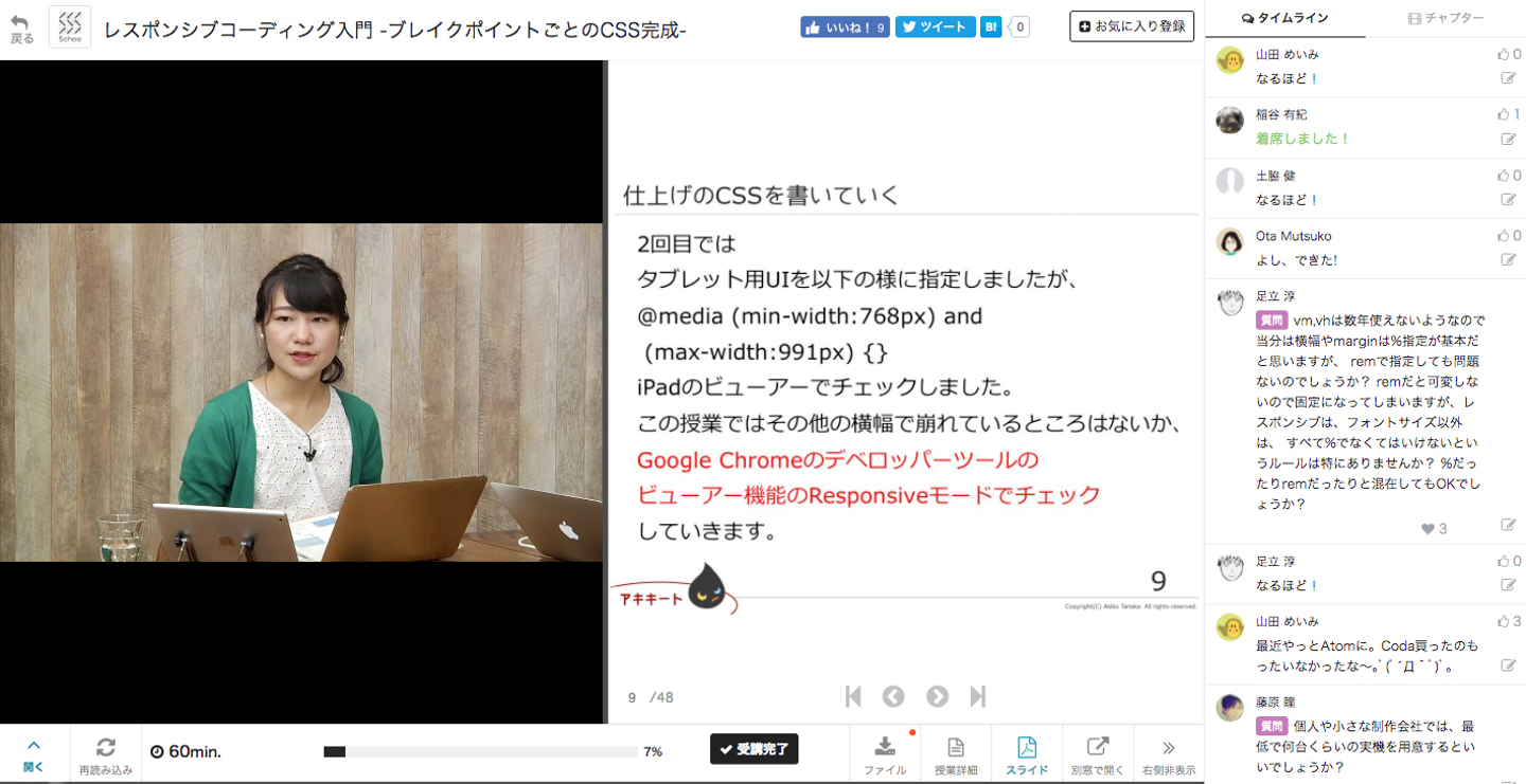 受講生からのどのコメントを拾うとか、どんな質問が来るかって事前に分からないじゃないですか。どの発言を拾って授業にするかで理解が深まるってのがすごいいいなって、それがスクーでしかできないっていつも感じてます。