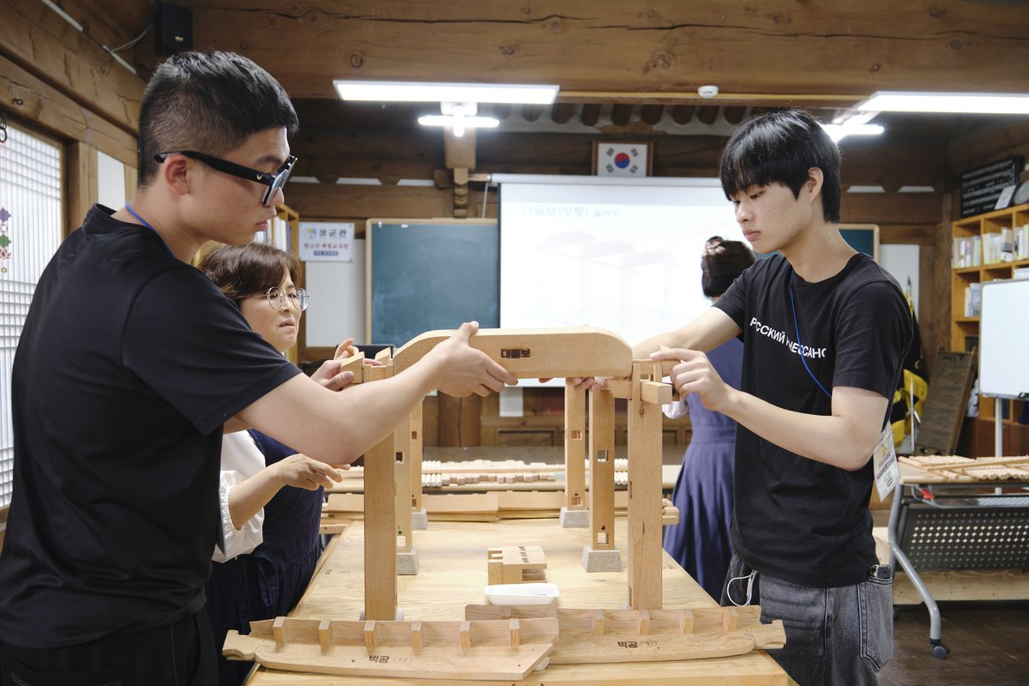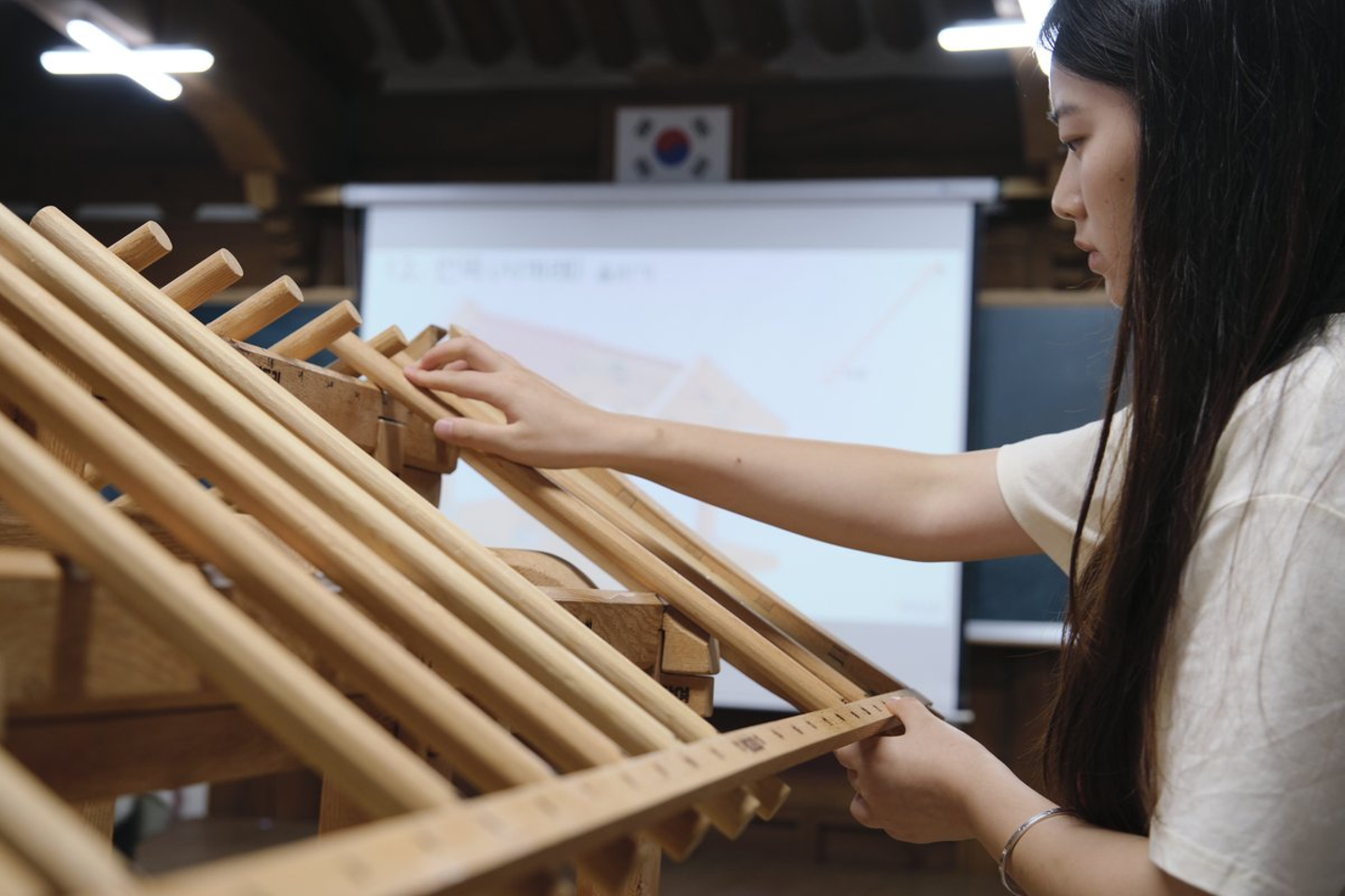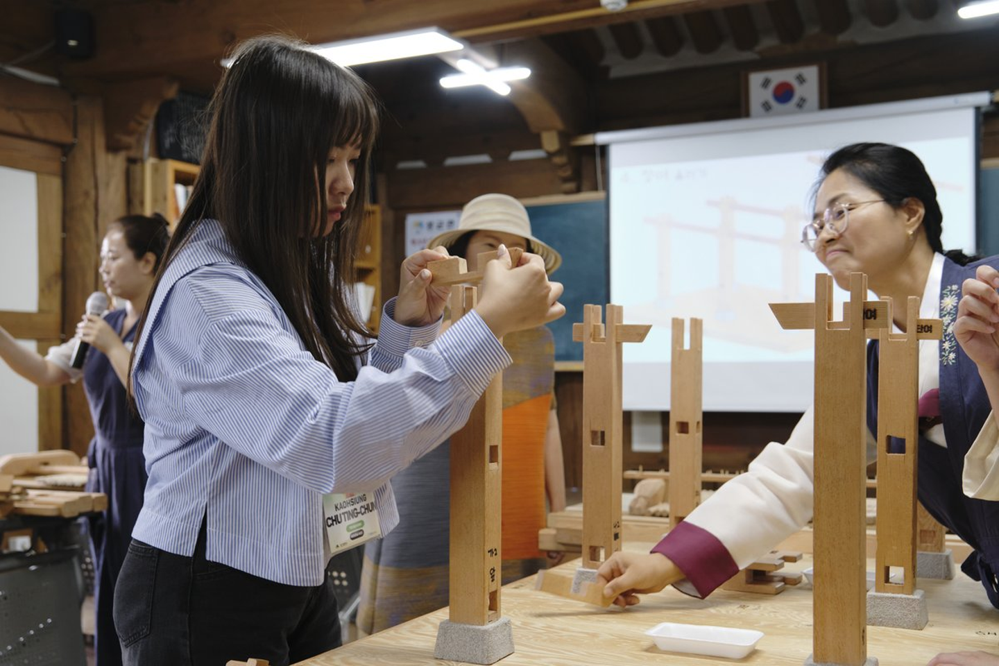 レゴのように組み立てる縮小版モデルで、韓国の伝統家屋のつくりを学んだり、