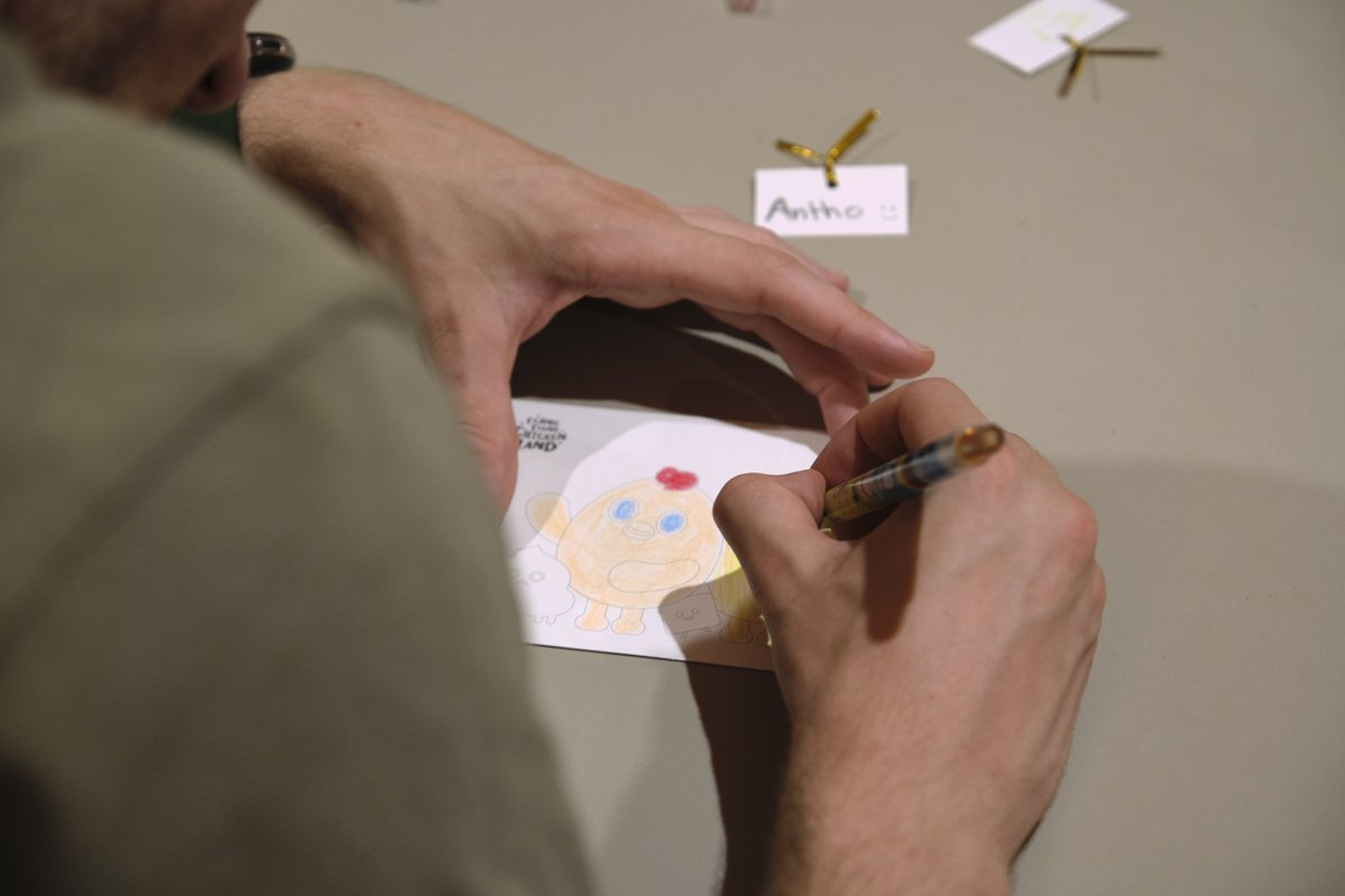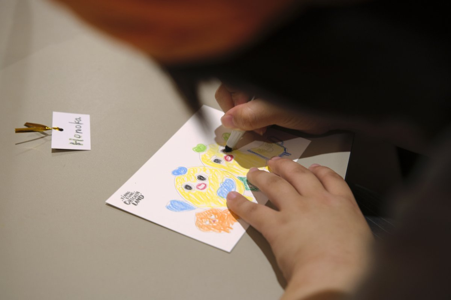 オリジナルキャラクターのポストカードに色を塗りぬり