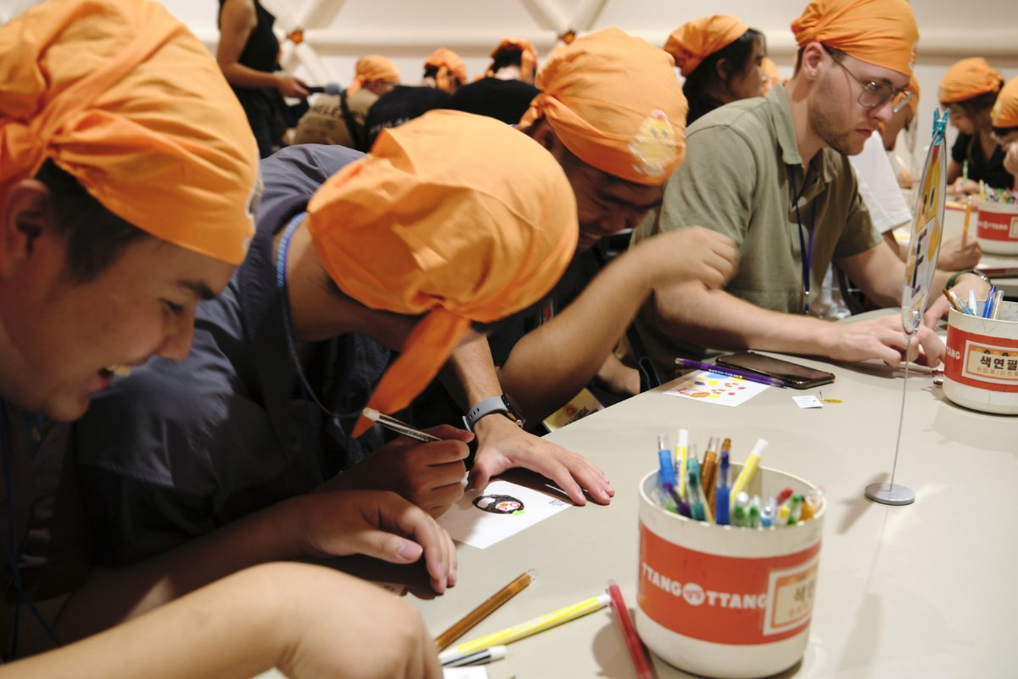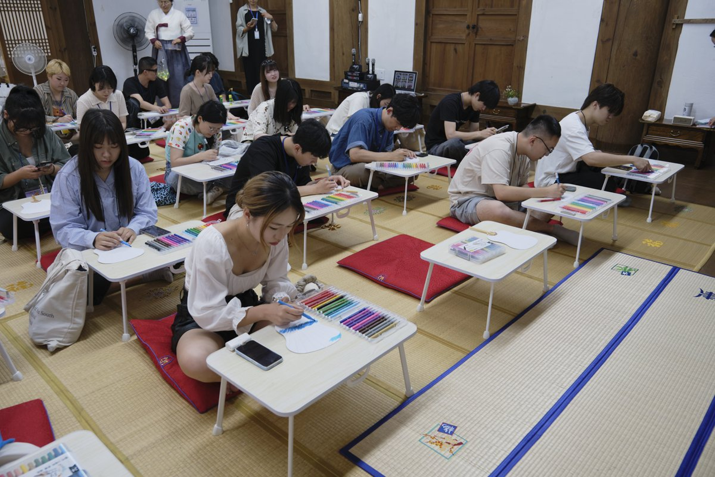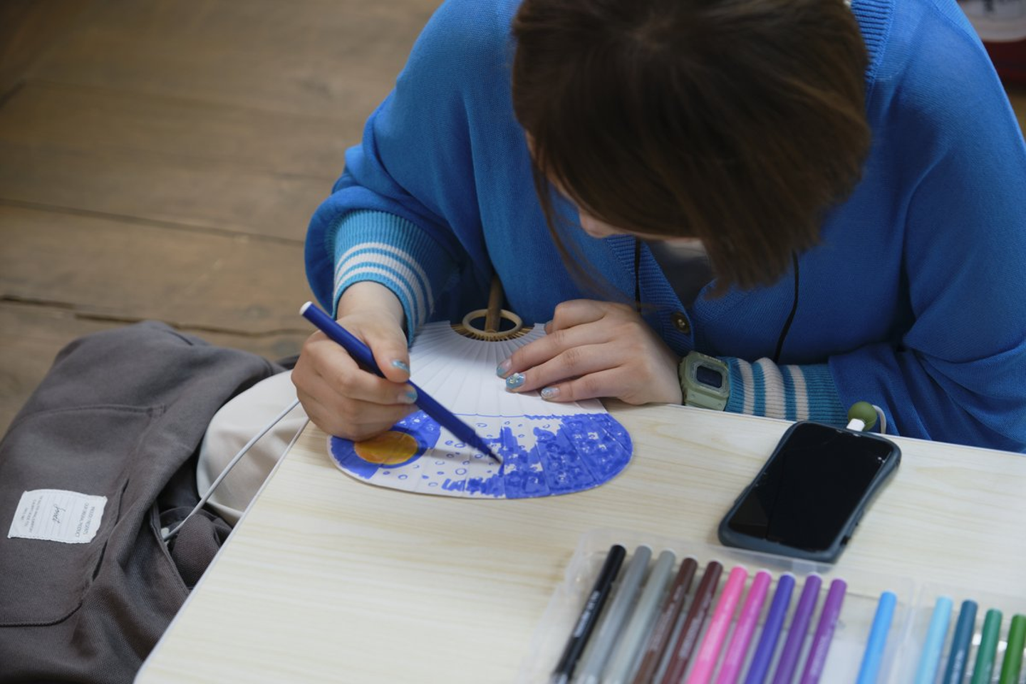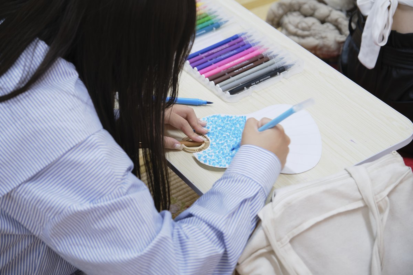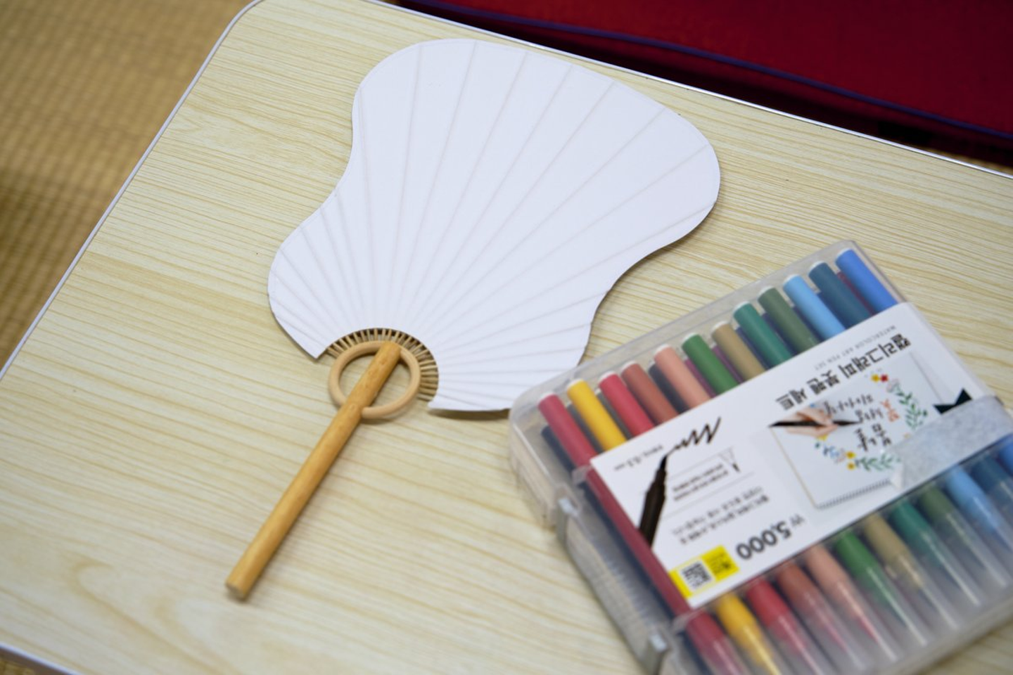 韓国の伝統的なうちわの手作りワークショップも。日本のうちわと形が異なるのが面白いですね。