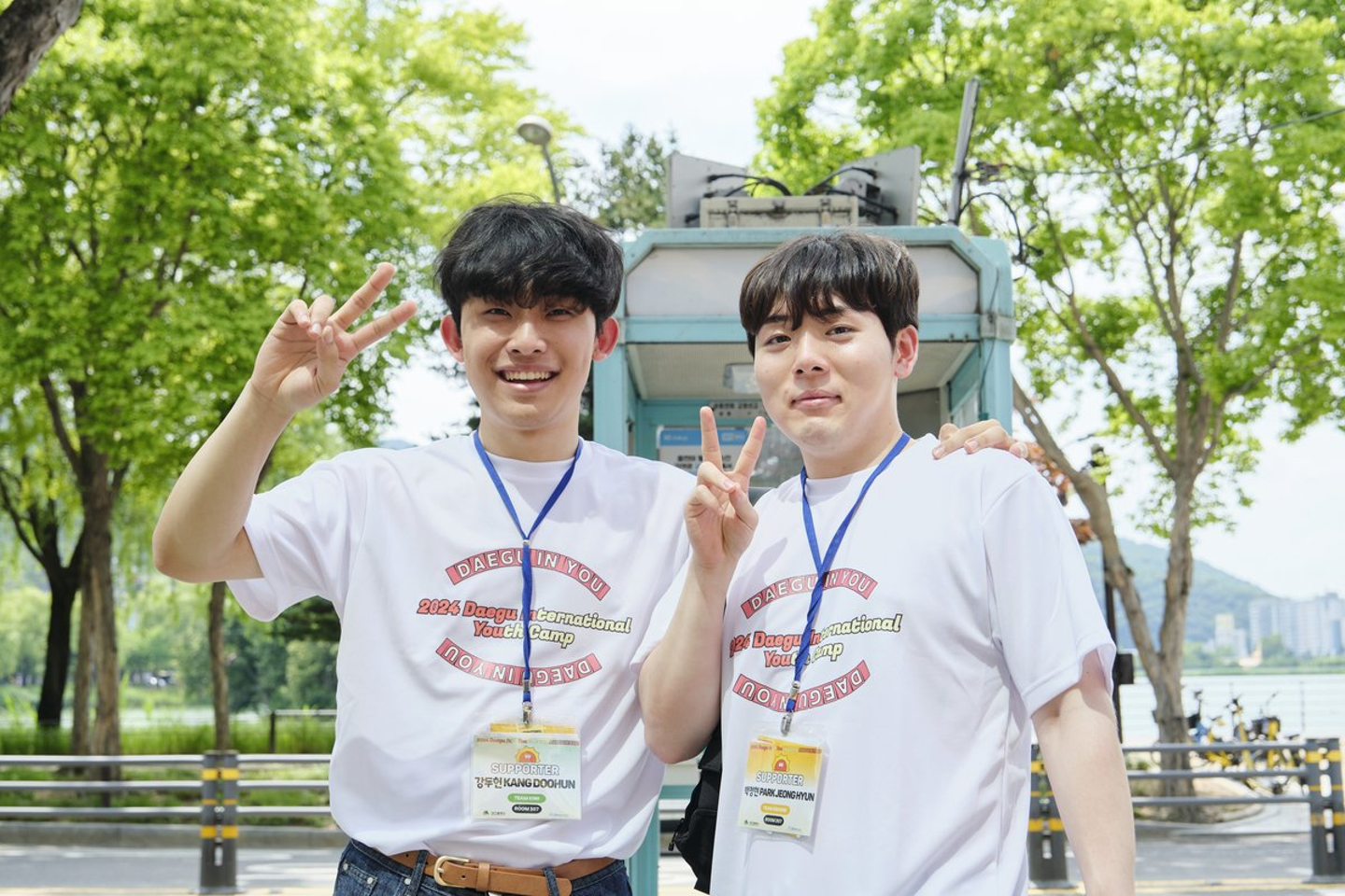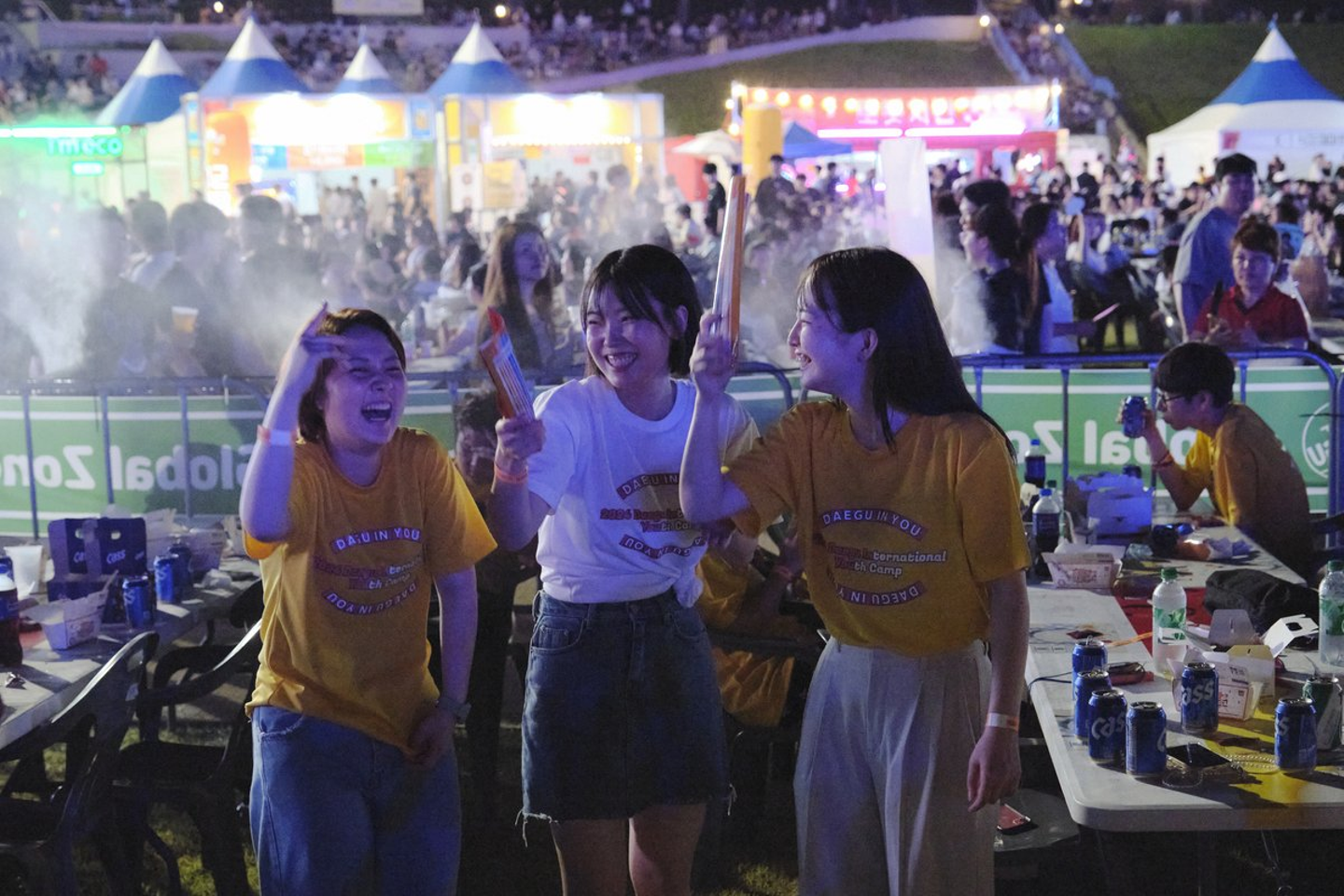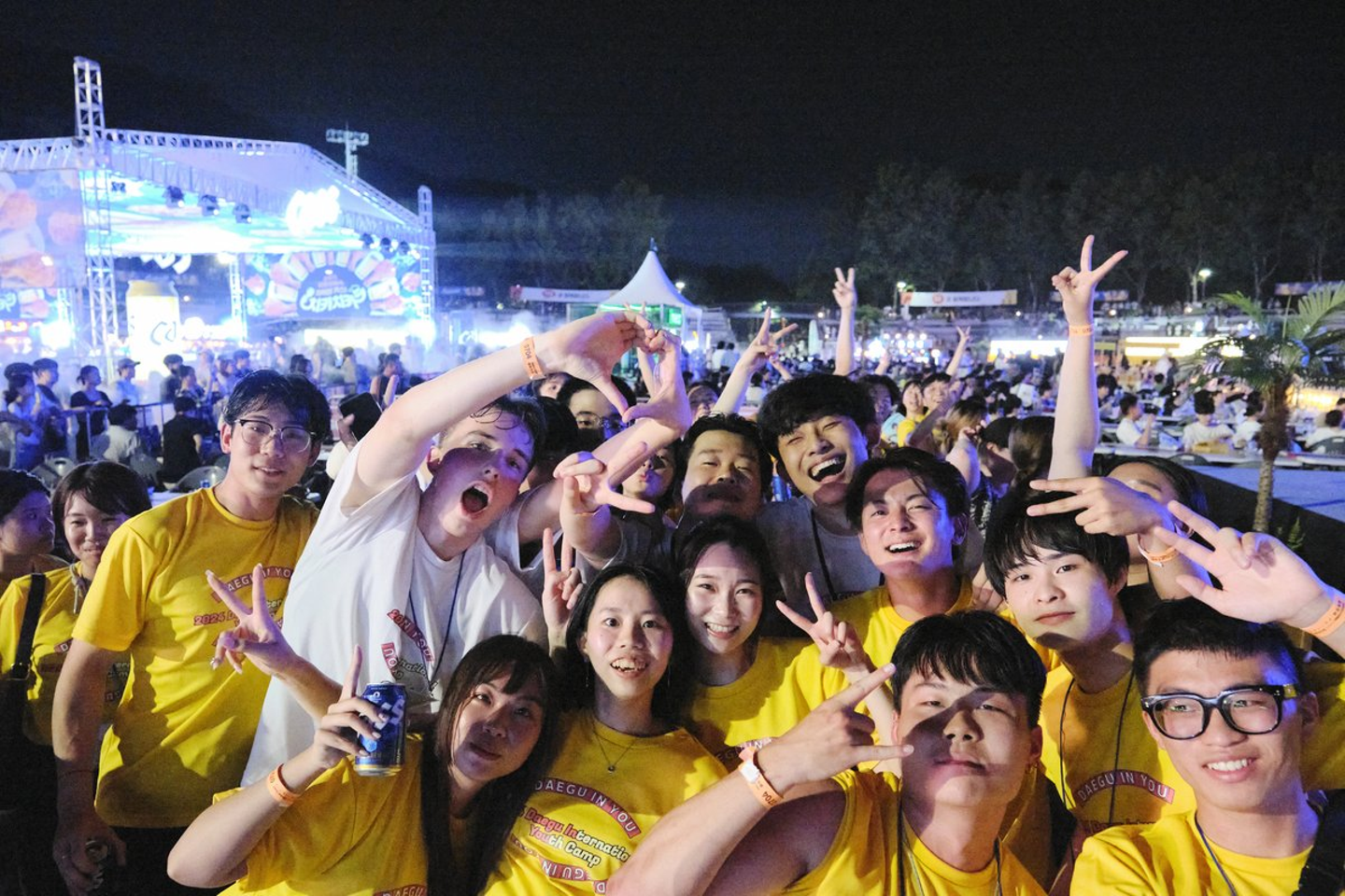 白いキャンプTシャツの学生は、大邱の大学に通うサポーターチーム!