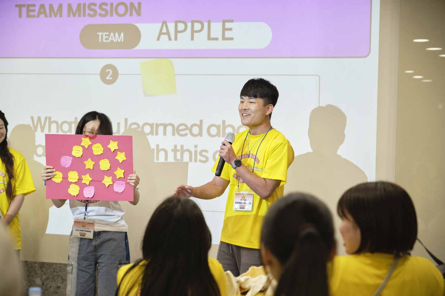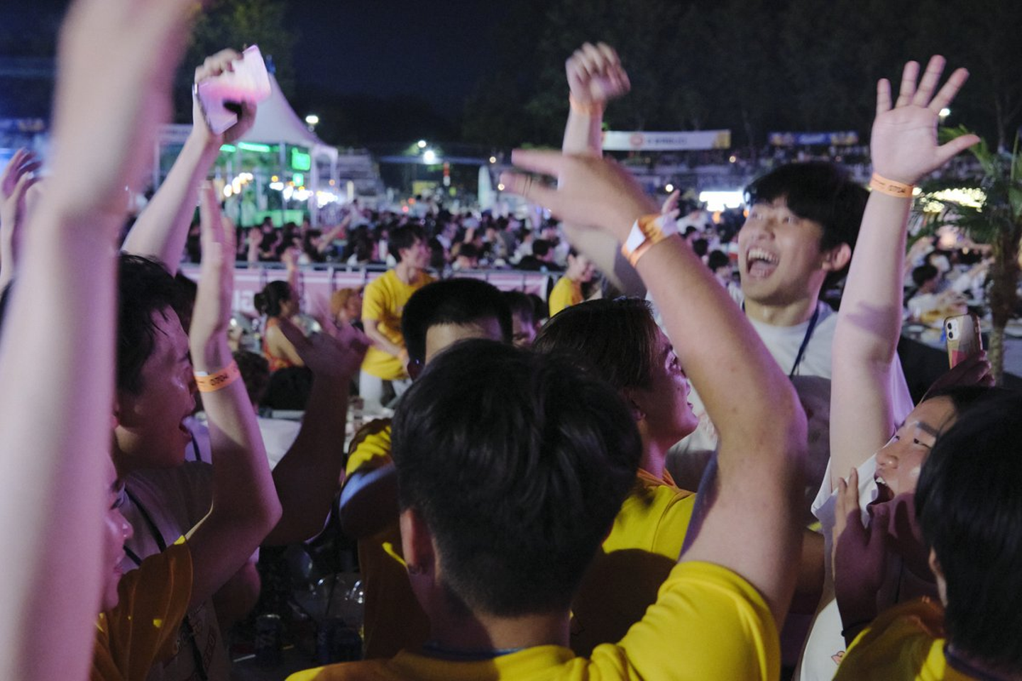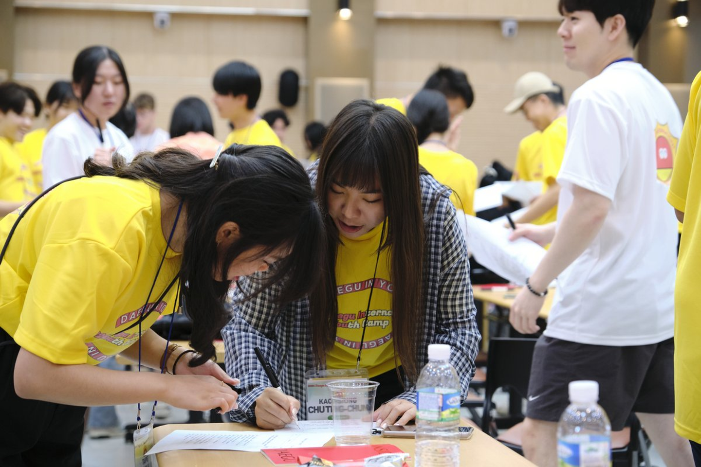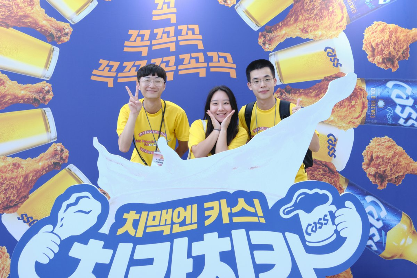 白いキャンプTシャツの学生は、大邱の大学に通うサポーターチーム!
